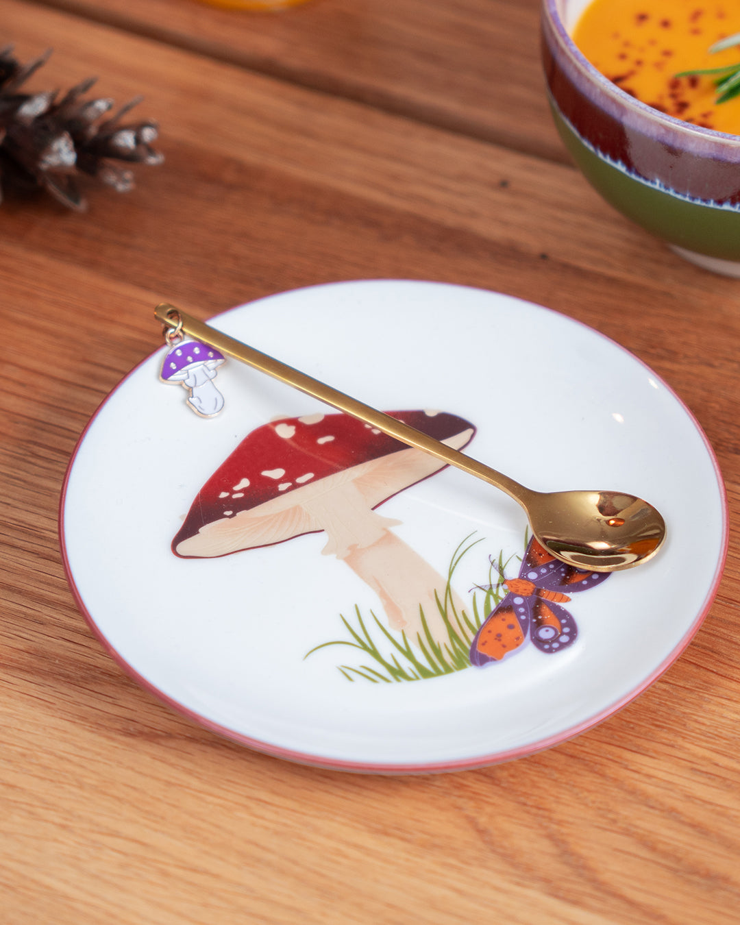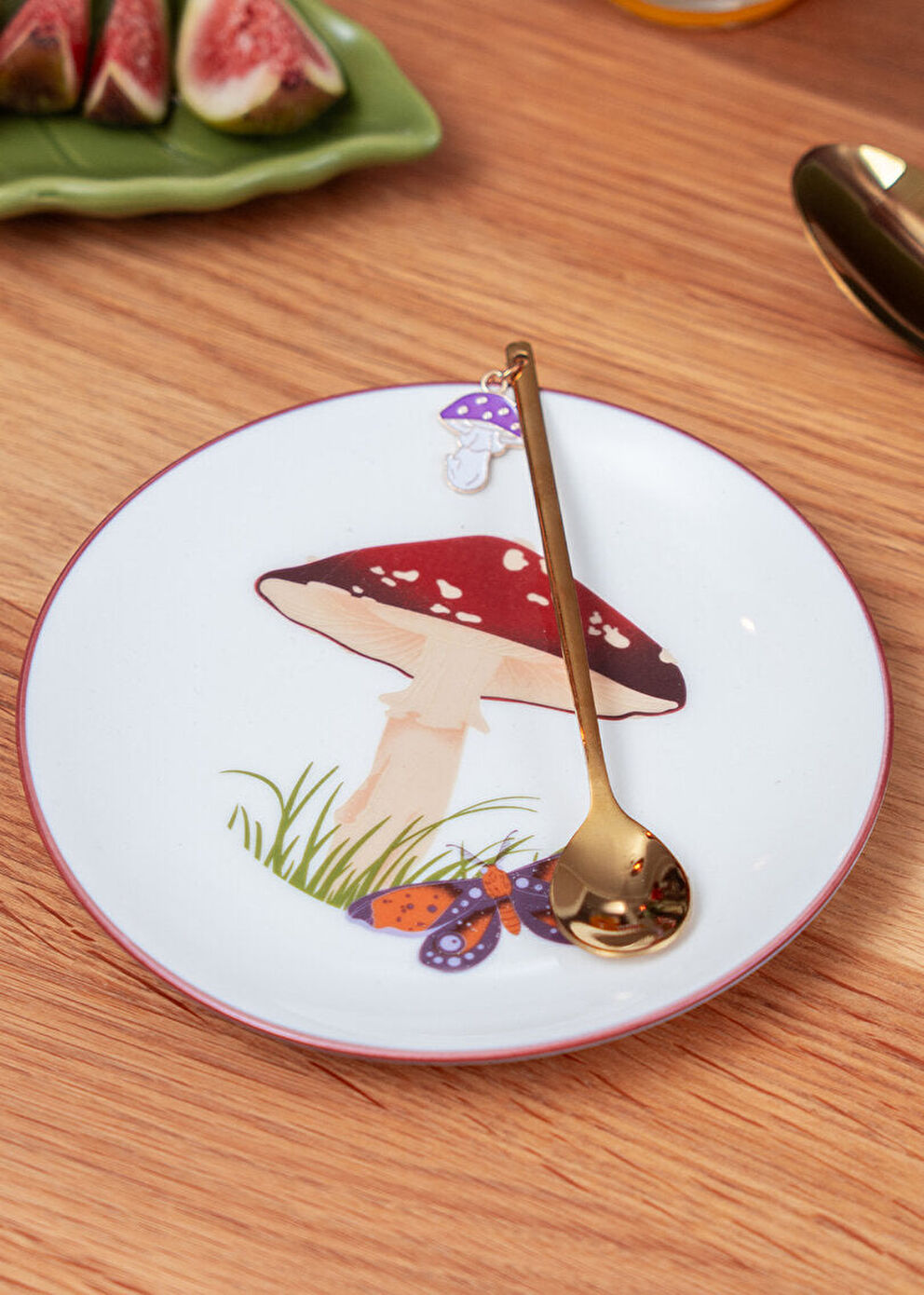 Mantar Desenli Küçük Seramik Tabak, doğadan ilham alan tasarımıyla sofralarınıza hem zarif hem de eğlenceli bir dokunuş getirir. 15,5 x 2 cm boyutlarındaki ideal ölçüsü sayesinde mezeler, tatlılar veya küçük öğünler sunmak için mükemmel bir tercihtir. Canlı mantar motifleri, toprak tonlarıyla birleşerek sonbaharın sıcak ruhunu sofranıza taşır ve rustik bir atmosfer yaratır.