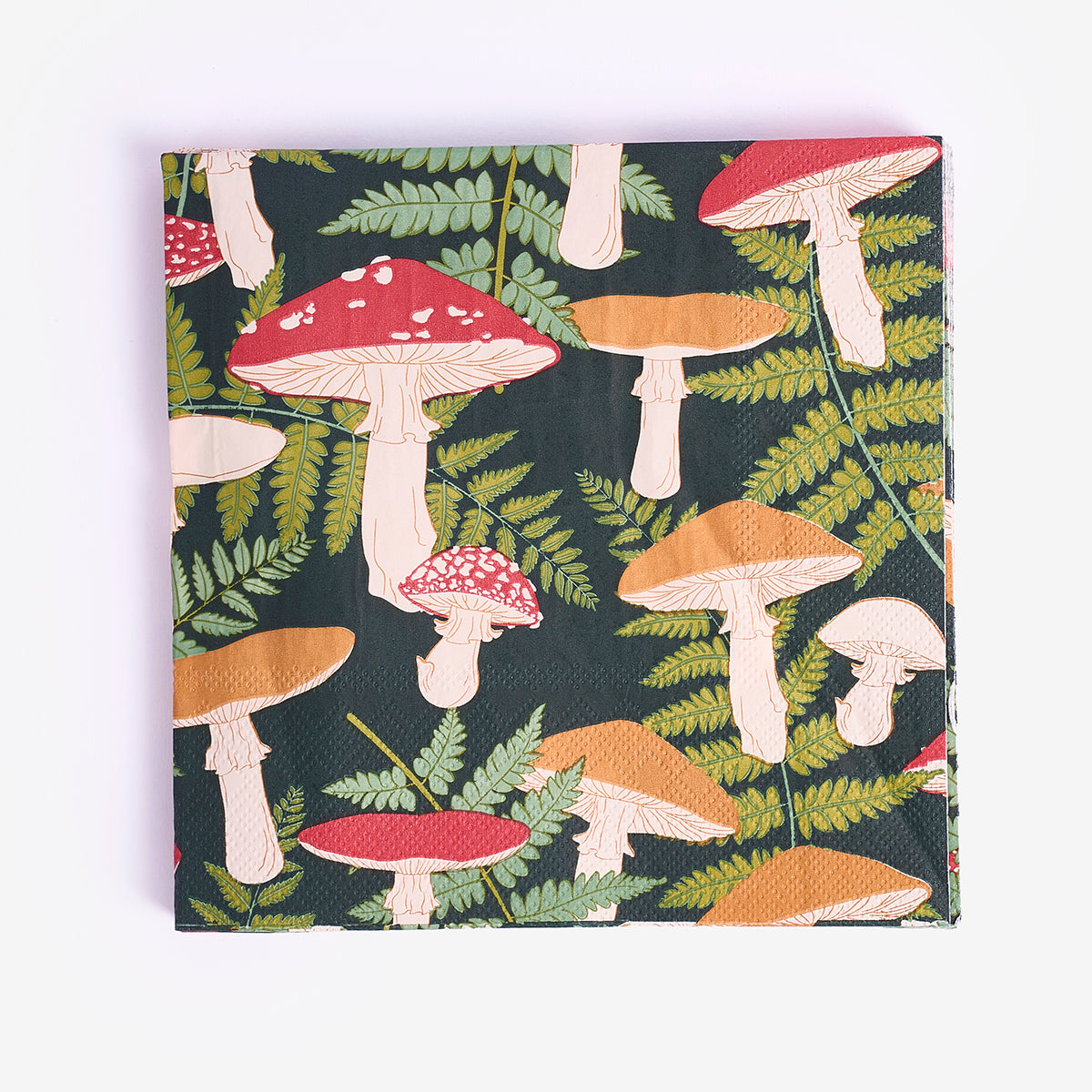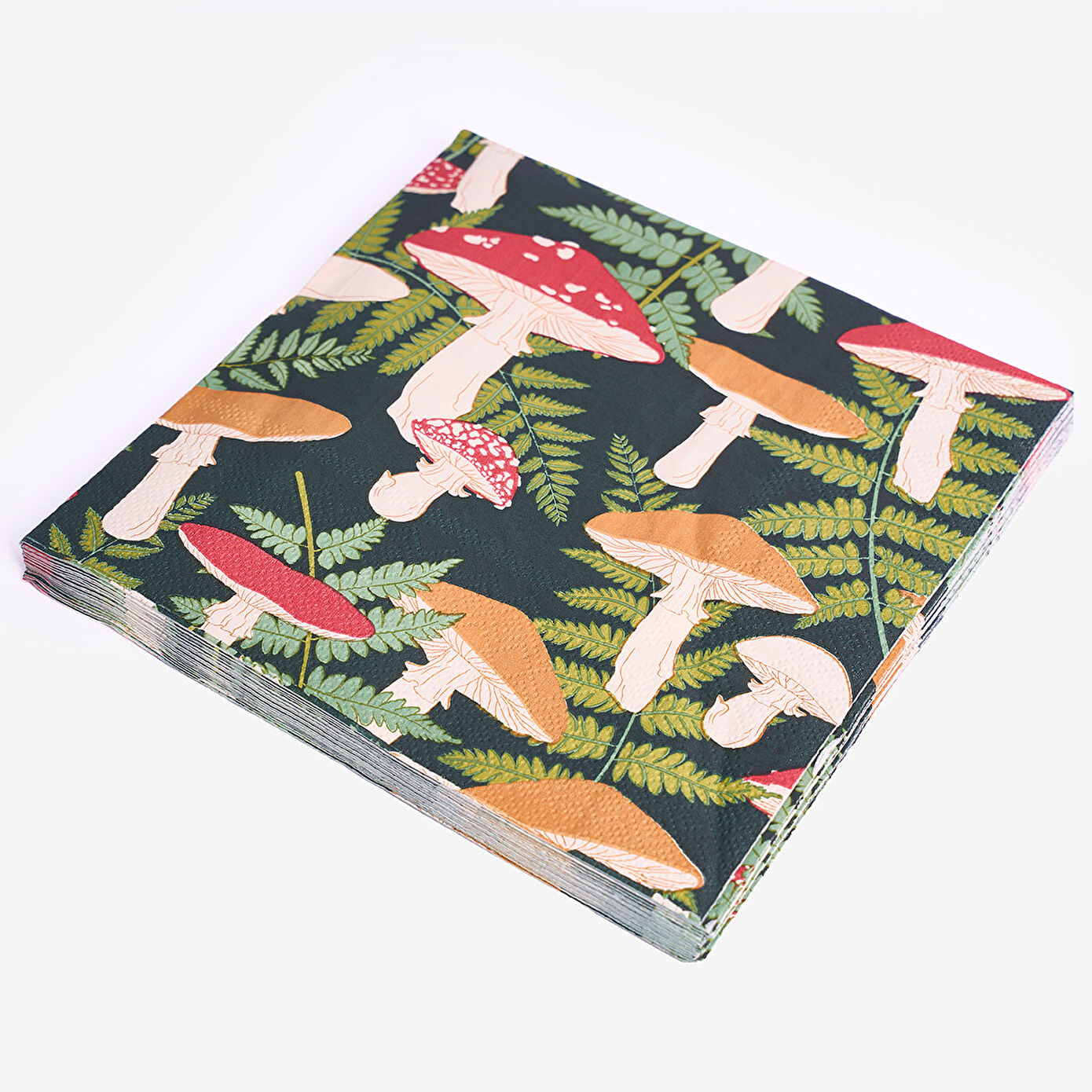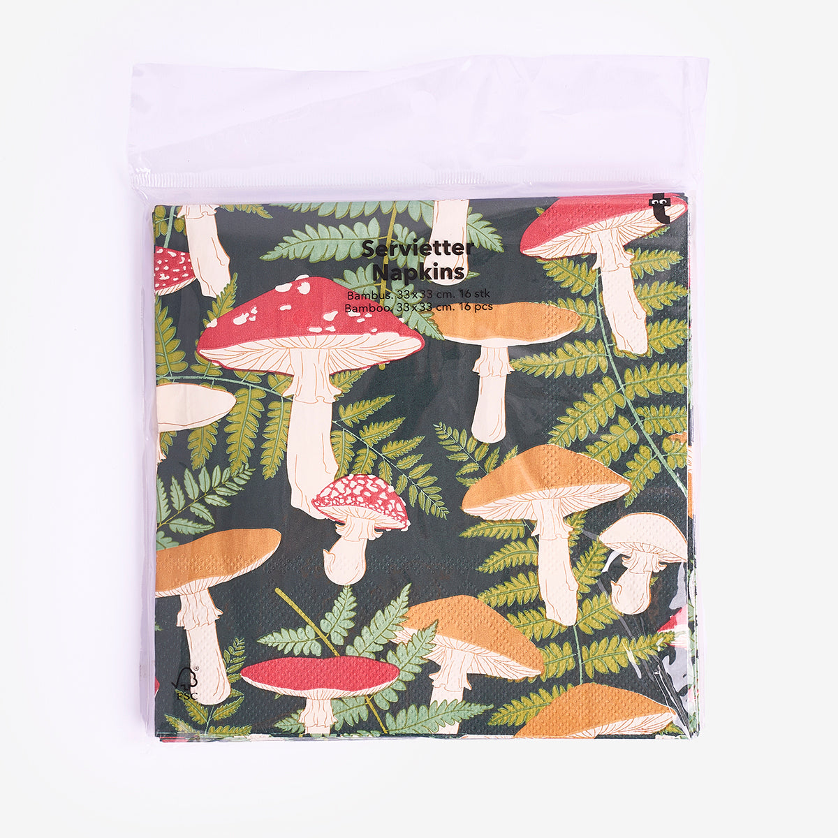 Mantar Desenli Yeşil 16'lı Kağıt Peçete Seti, sofralarınıza doğadan ilham alan eğlenceli bir dokunuş katar. Yeşil arka plan üzerine işlenmiş mantar desenleri, sonbahar toplantılarında veya orman temalı dekorasyonlarda masanıza neşeli bir hava getirir. Katlandığında 16,5 x 16,5 cm boyutlarında olan bu peçeteler, içecekler, atıştırmalıklar veya tatlılar için ideal boyuttadır.