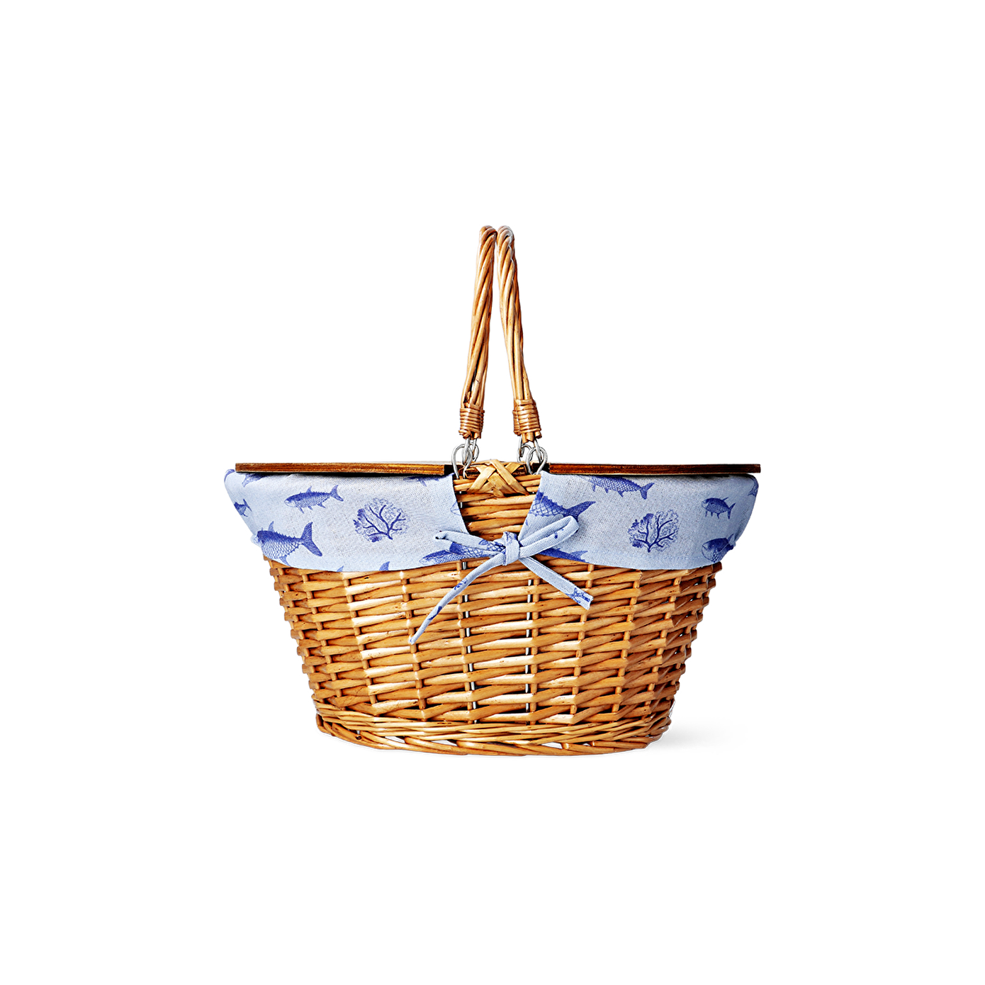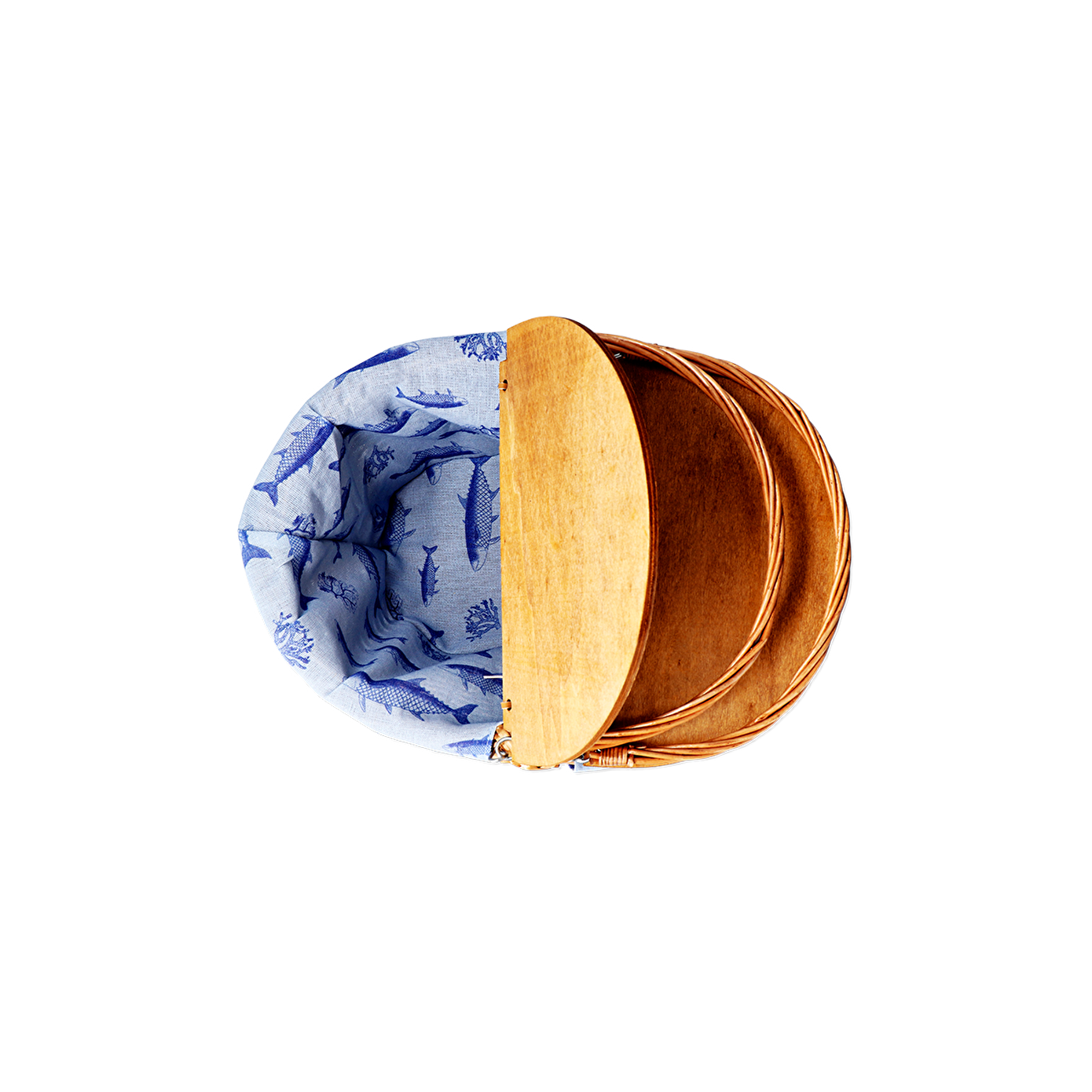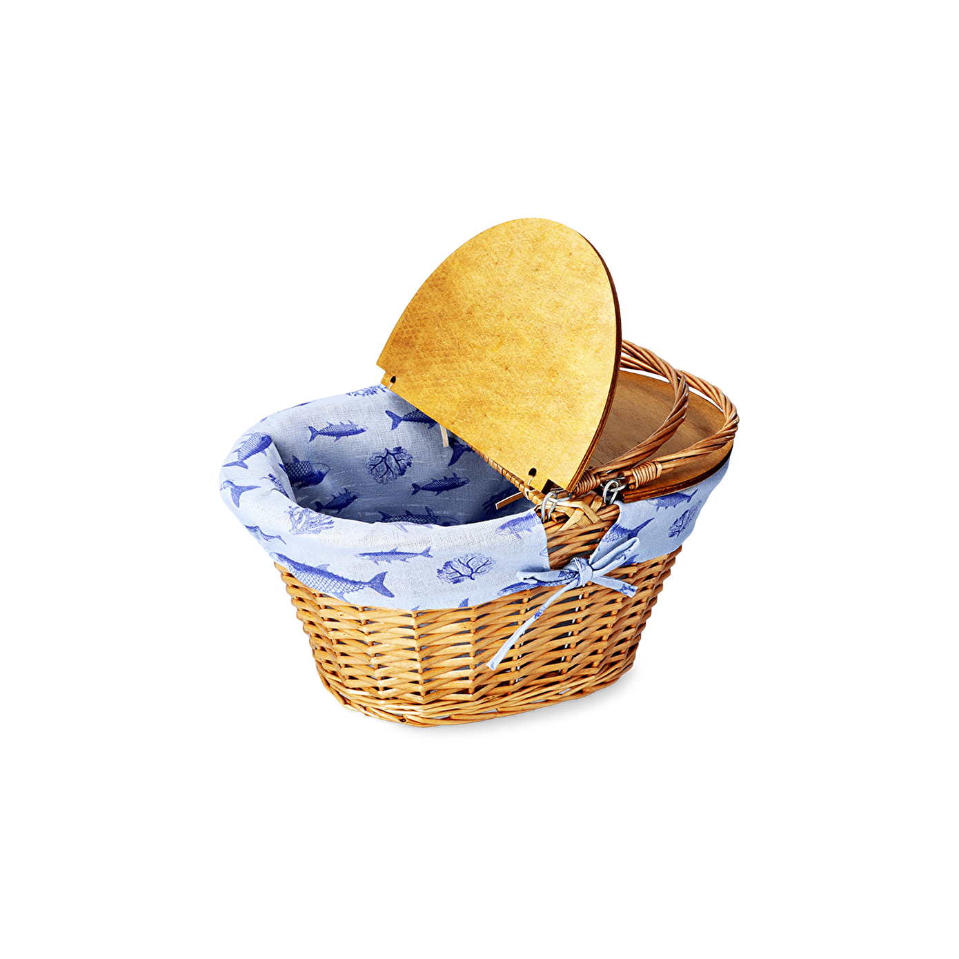 Mavi Kumaş Detaylı Hasır Piknik Sepeti ile açık hava etkinliklerinizi konforlu ve şık bir hale getirin. 39,5 cm genişliğinde, 20 cm yüksekliğinde ve 30 cm derinliğinde olan bu geniş sepet, piknik malzemelerinizi düzenli ve güvenli bir şekilde taşıyacak kadar büyük bir alana sahiptir. Söğüt ağacından üretilen sağlam yapısı ve şık mavi kumaş kapağı, estetik ve dayanıklılığı birleştirir, içerdiği yiyecekleri toz ve kirden korur.