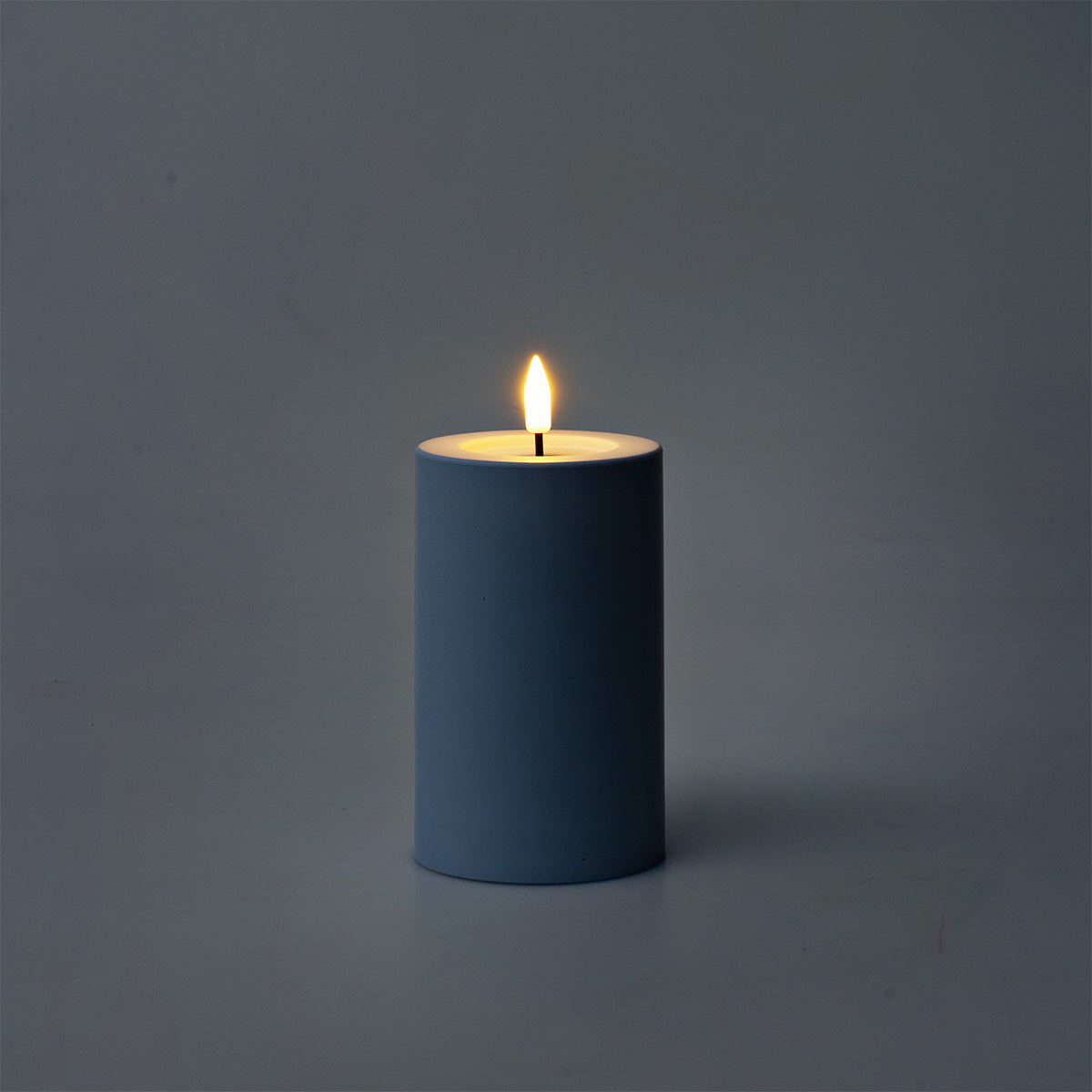 Mavi LED Mum 12,5 cm x 7,5 cm, tek başına ya da diğer mumlarla kombinlenerek akşam toplantıları veya dışarıda geçirilen huzurlu geceler için mükemmel bir ortam sunar. Hem dekoratif hem de işlevsel olan bu LED mum, dış mekan aydınlatmasını zahmetsizce şık bir şekilde tamamlar.