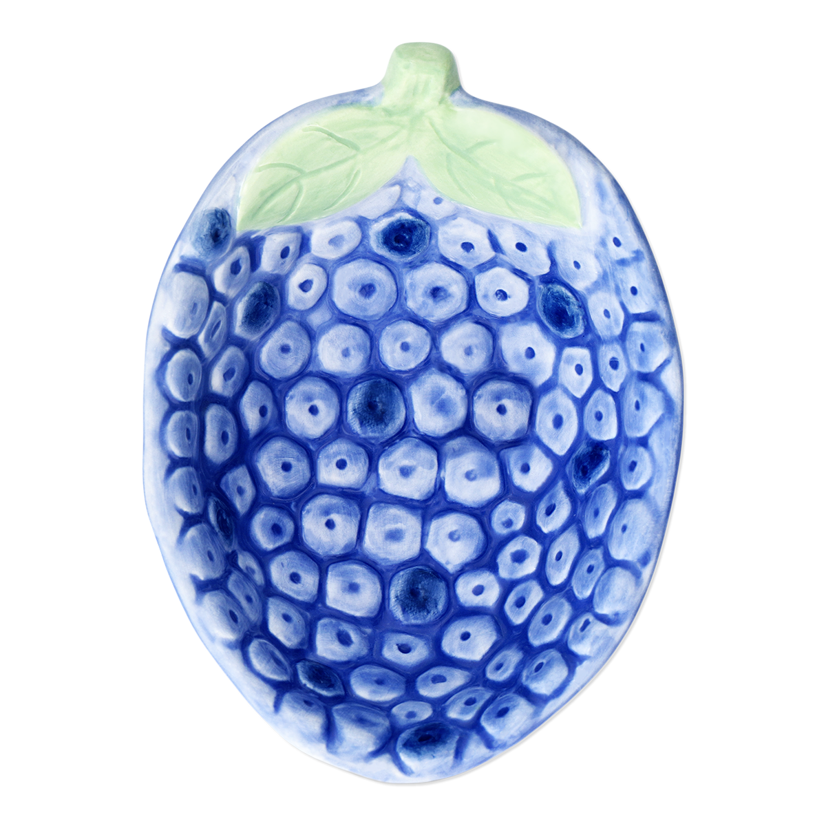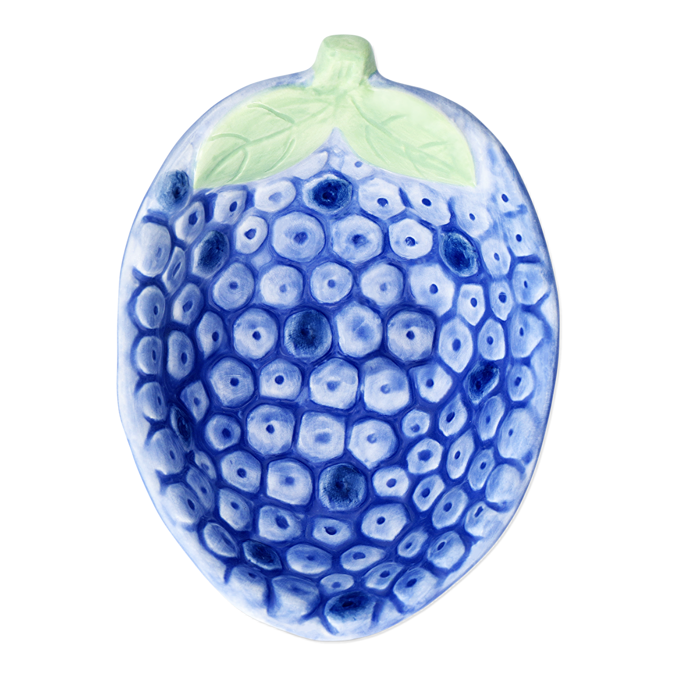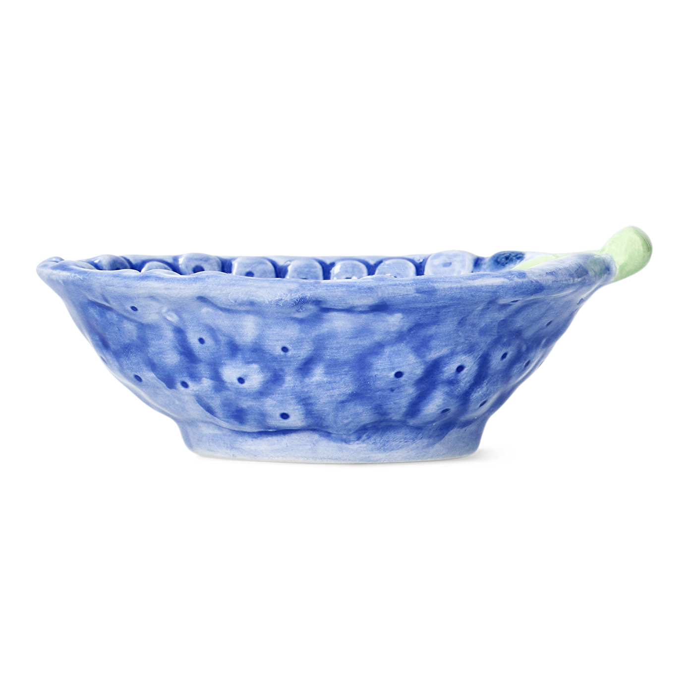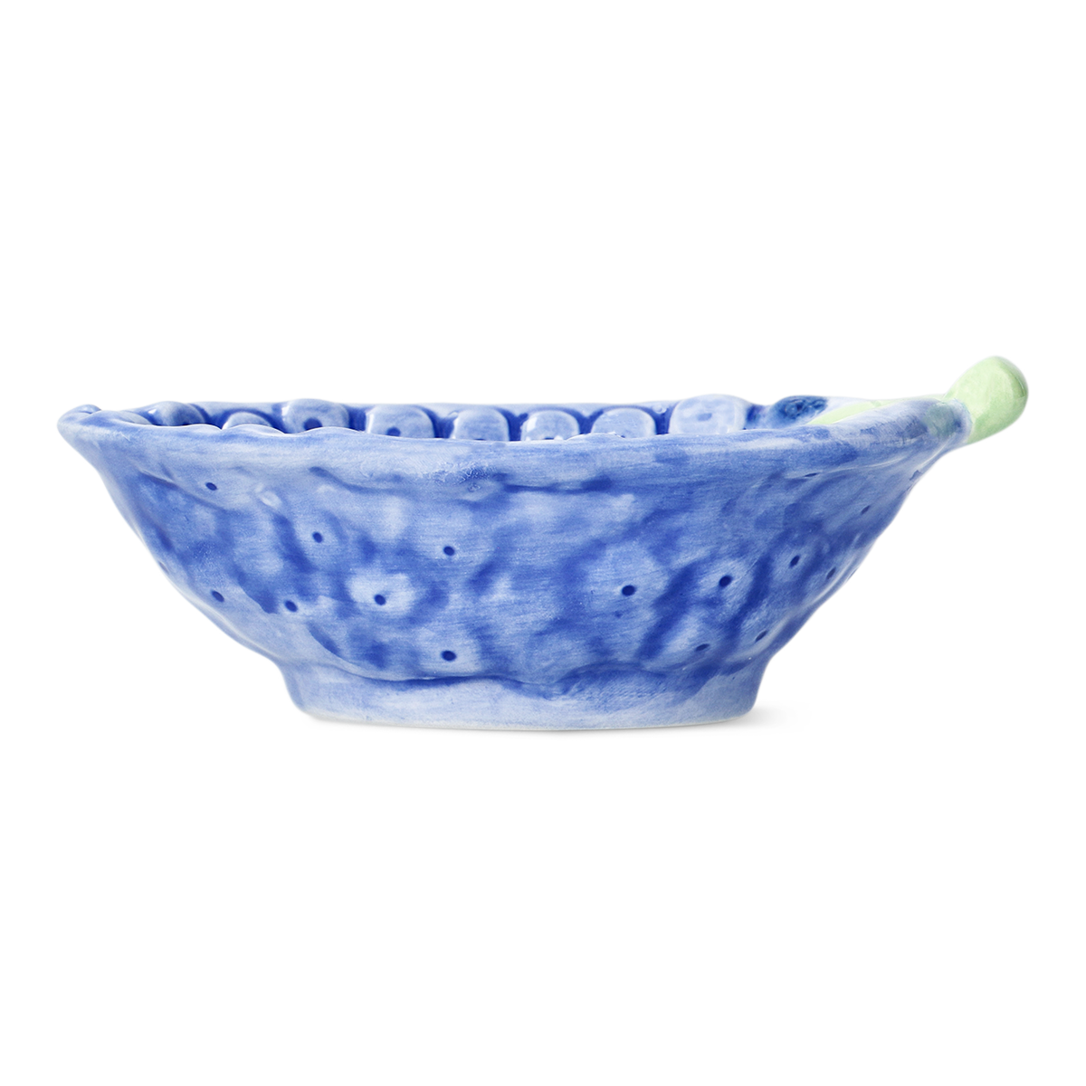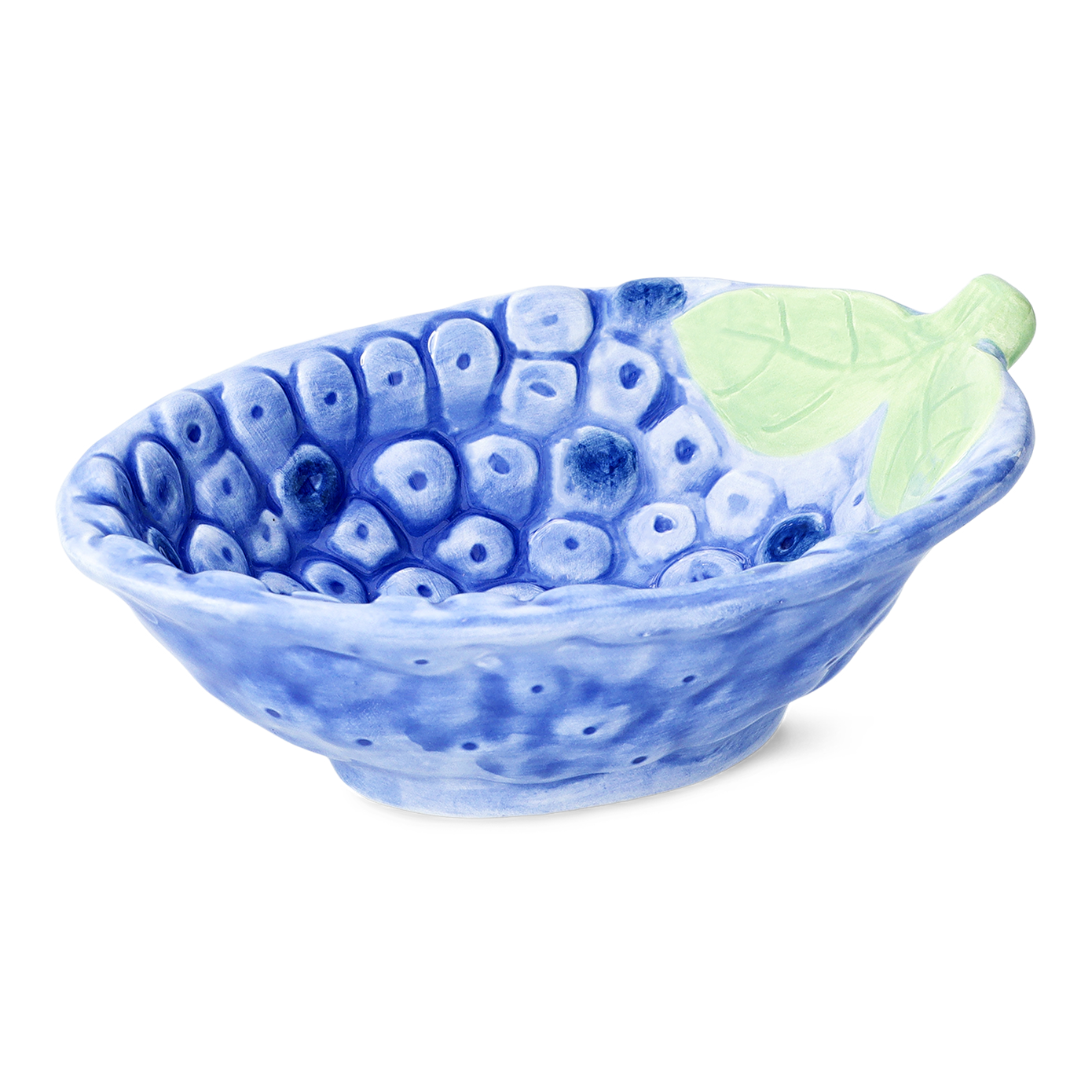 Mavi Yaban Mersini Şeklinde Seramik Kase, masanıza eğlenceli ve doğal bir dokunuş katmak için mükemmel bir seçenektir. Olgun yaban mersini salkımını andıran karmaşık kabartma detayları ve büyüleyici yeşil yaprak süslemeleri ile tasarlanmış bu kase, dekoratif bir öğe olmasının yanı sıra oldukça işlevseldir. 16 x 6,1 x 11,9 cm boyutlarında olan bu kase, atıştırmalıklar, soslar, meyveler veya garnitürler gibi çeşitli yiyecekleri servis etmek için idealdir.