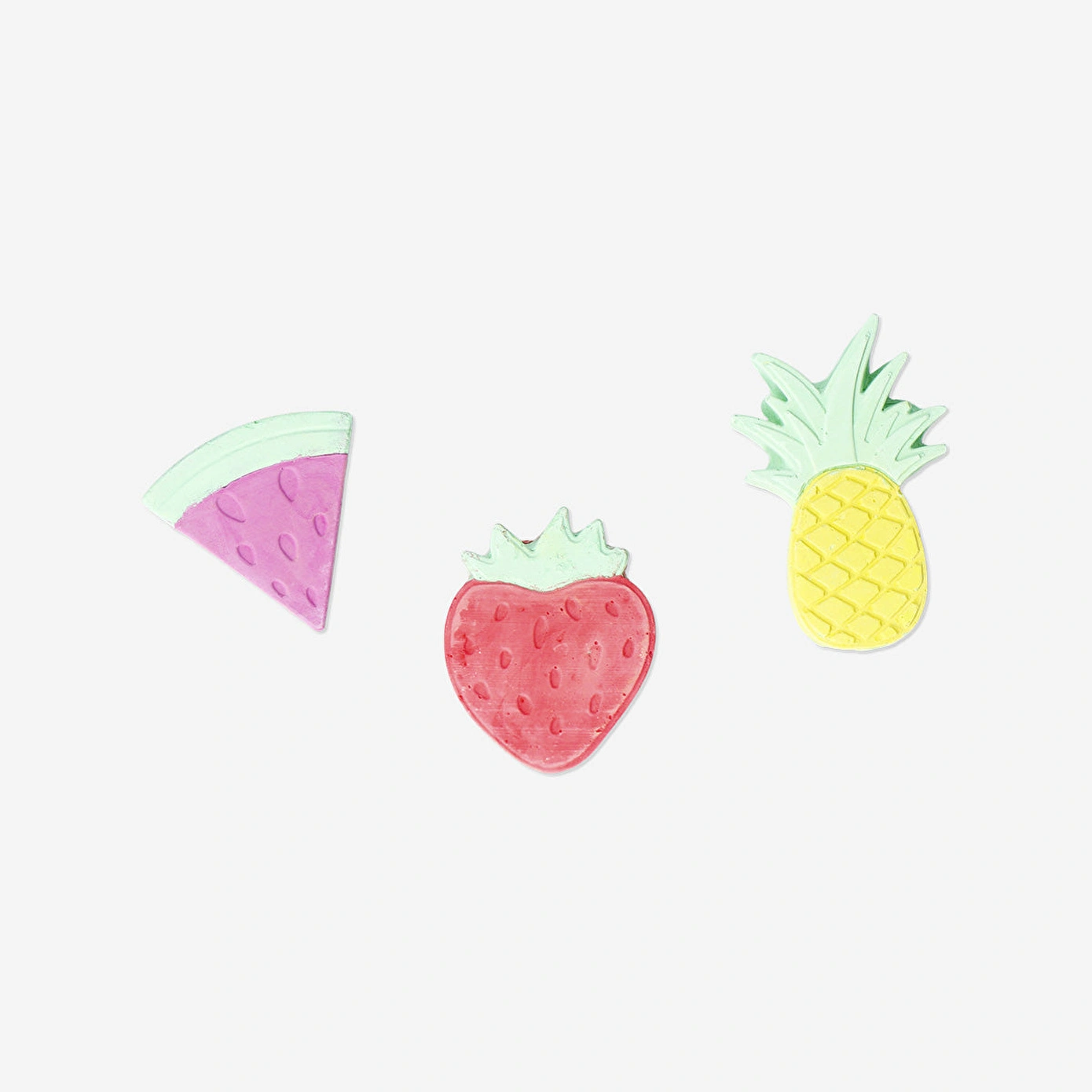 Ölçü: 6,6 x 5,2 x 1,6 cm (çilek), 5,6 x 5,4 x 1,6 cm (karpuz), 8,2 x 5,4 x 1,5 cm (ananas)