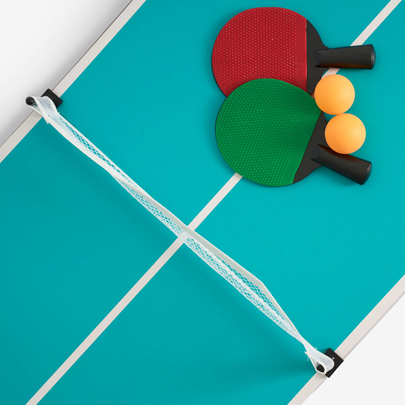 Mini Yeşil Masa Tenisi Oyunu, eğlenceli ve rekabet dolu anlar yaşamanızı sağlar. Dayanıklı malzemelerden üretilen bu oyun masası, sağlam yapısıyla uzun ömürlü bir kullanım sunar. 80 x 40 cm ölçülerindeki masa, evde veya ofiste keyifli maçlar yapmanıza olanak tanır.