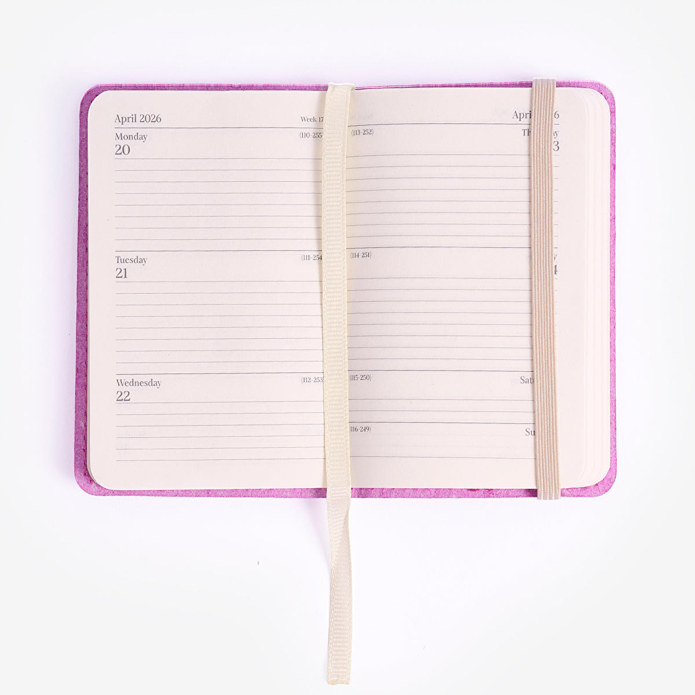 Mor Haftalık 2026 Cep Takvimi, hem profesyonel hem de kişisel kullanım için uygundur ve her hafta için net bir özet sunarak planlamayı daha verimli hale getirir. Küçük boyutu sayesinde her ortamda hızlı erişim sağlar, iş toplantılarınızdan kişisel hedeflerinize kadar düzeninizi kolayca kontrol etmenize imkan tanır. 2026 yılı boyunca motivasyonunuzu artıracak ve planlama alışkanlığınızı destekleyecek pratik bir ajanda görevi görür. Şıklığı ve işlevselliği bir arada sunarak hediye seçeneği olarak da öne çıkar.