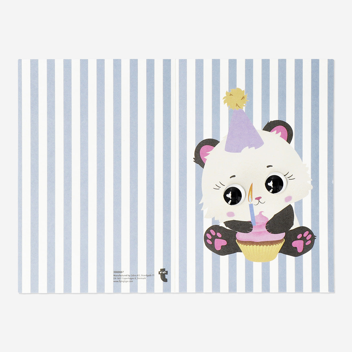 Panda Desenli Tebrik Kartı, sevimli ve eğlenceli bir dokunuşla kutlamalarınızı daha özel hale getirin. 11,5 x 17 x 0,3 cm ölçülerindeki bu kart, 3D gözlerle tamamlanmış, elinde cup kek tutan oyuncu bir panda tasarımıyla neşeli bir atmosfer yaratır. Kağıttan üretilmiş olan kart, eşleşen bir zarfla birlikte gelir ve içeriğinde paylaştığınız düşünceli mesajlara şık bir sunum sunar.