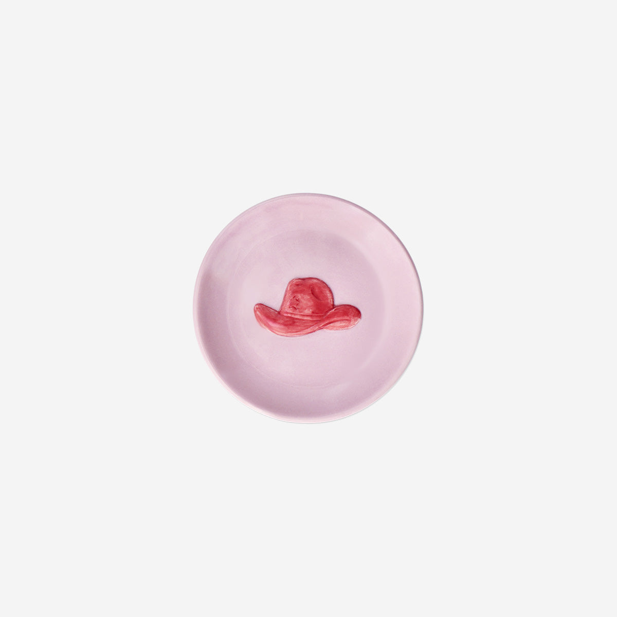 Pembe Kovboy Şapkası Desenli Tabak, eğlenceli ve şık bir tasarımla günlük düzenlemenize zarif bir dokunuş katar. Seramikten üretilen bu yuvarlak tabak, 11,7 x 1,75 cm boyutlarında olup, mücevherler, madeni paralar veya anahtarlar gibi küçük eşyalarınızı düzenli tutmak için idealdir. Makyaj masaları, tezgahlar veya komodinler gibi alanlara kolayca sığarak hem işlevsel hem de dekoratif bir parça olarak kullanılabilir.