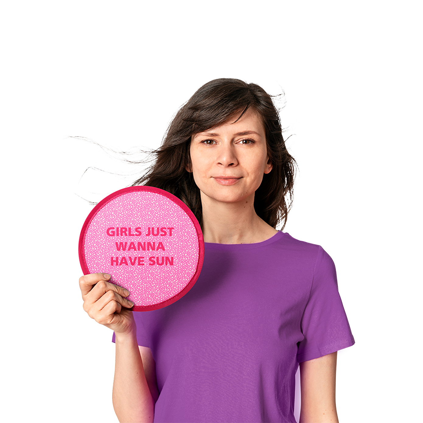 Pembe Sloganlı Yelpaze ile yazın vazgeçilmezlerine bir dokunuş katın. Kullanım kolaylığı düşünülerek tasarlanan yelpaze, 19,8 cm çapında ve eğlenceli bir sloganın yer aldığı göz alıcı bir desene sahiptir. Kompakt katlanabilir tasarımı sayesinde çantanıza veya cebinize kolayca sığar, hafif malzemesi ise zahmetsiz taşınabilirlik sağlar.
