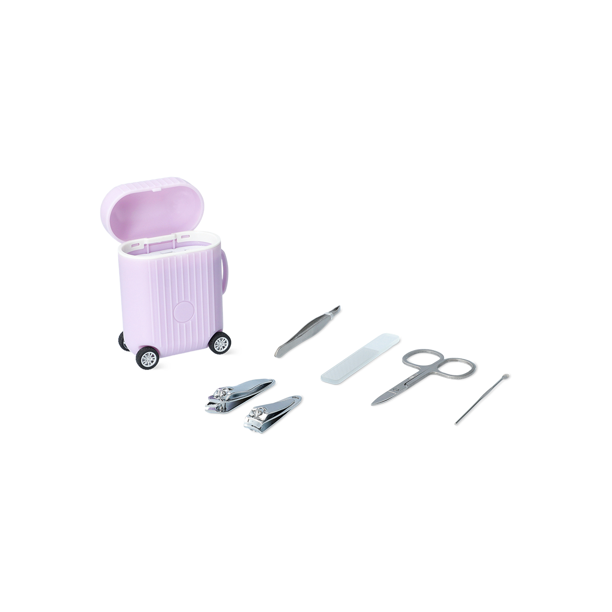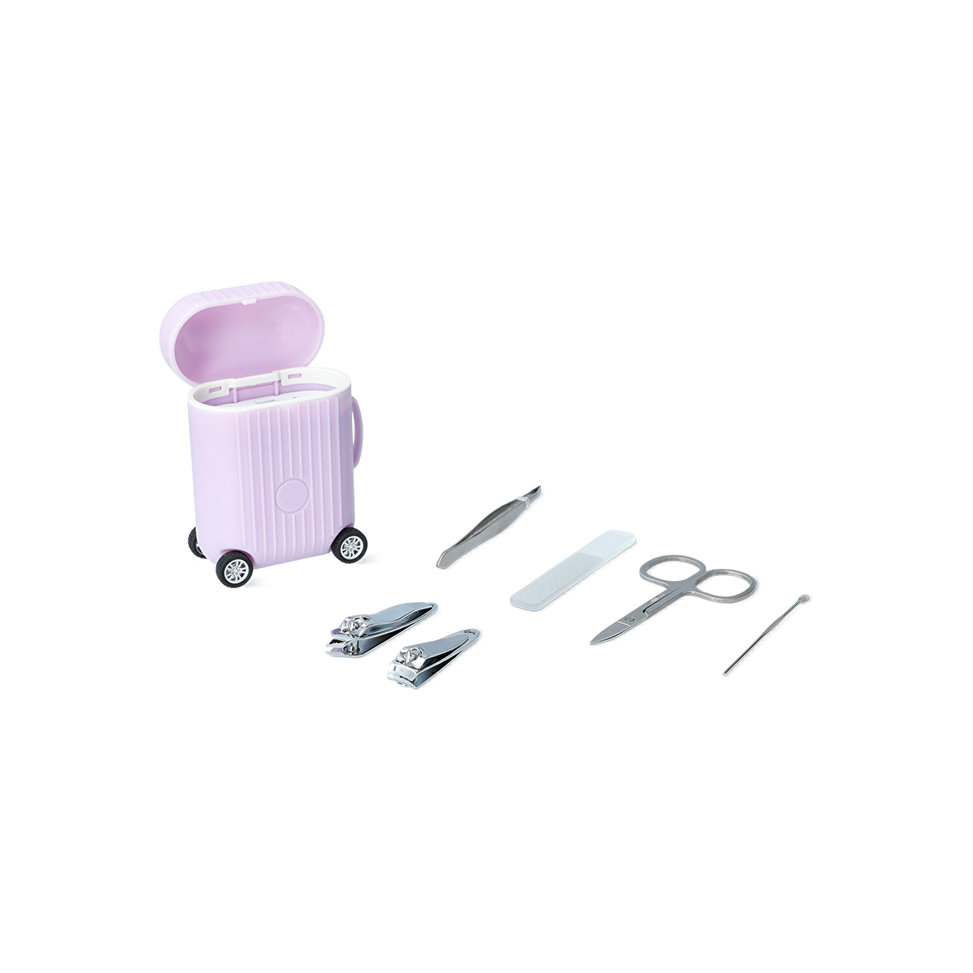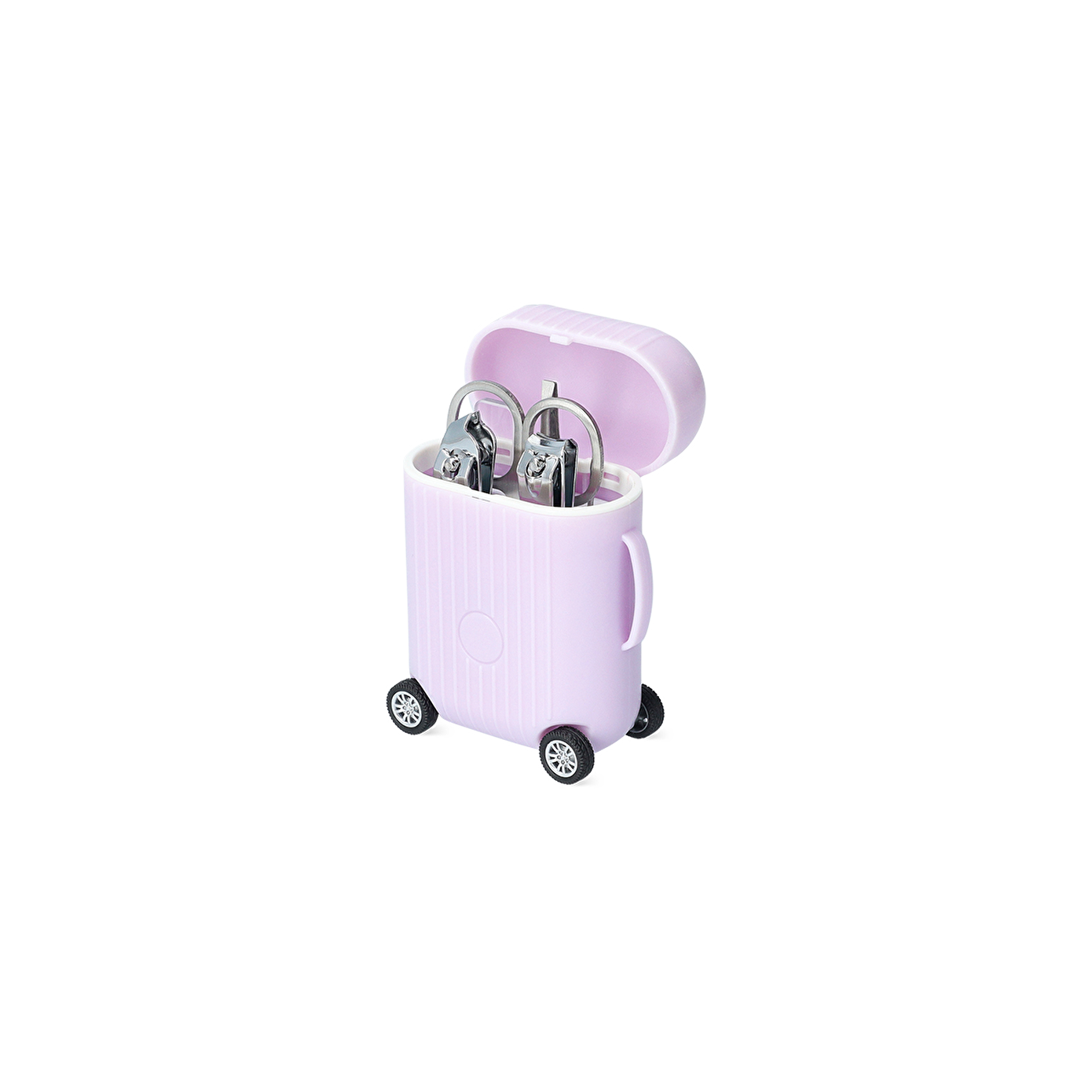 Pembe Valiz Şeklinde Manikür Seti, seyahat ederken veya evde rahatlıkla tırnak bakımı yapabilmeniz için tasarlanmış kompakt bir set sunar. 1,1 x 5,9 x 1,3 cm boyutlarındaki bu şık valiz şeklindeki set, içinde altı temel tırnak bakım aracını barındırır: tırnak makası, cımbız, tırnak eti itici, cam tırnak törpüsü, tırnak eti kesici ve tırnak kesici. Her bir alet, metalden üretilmiş olup, estetik ve dayanıklılığı bir arada sunar.