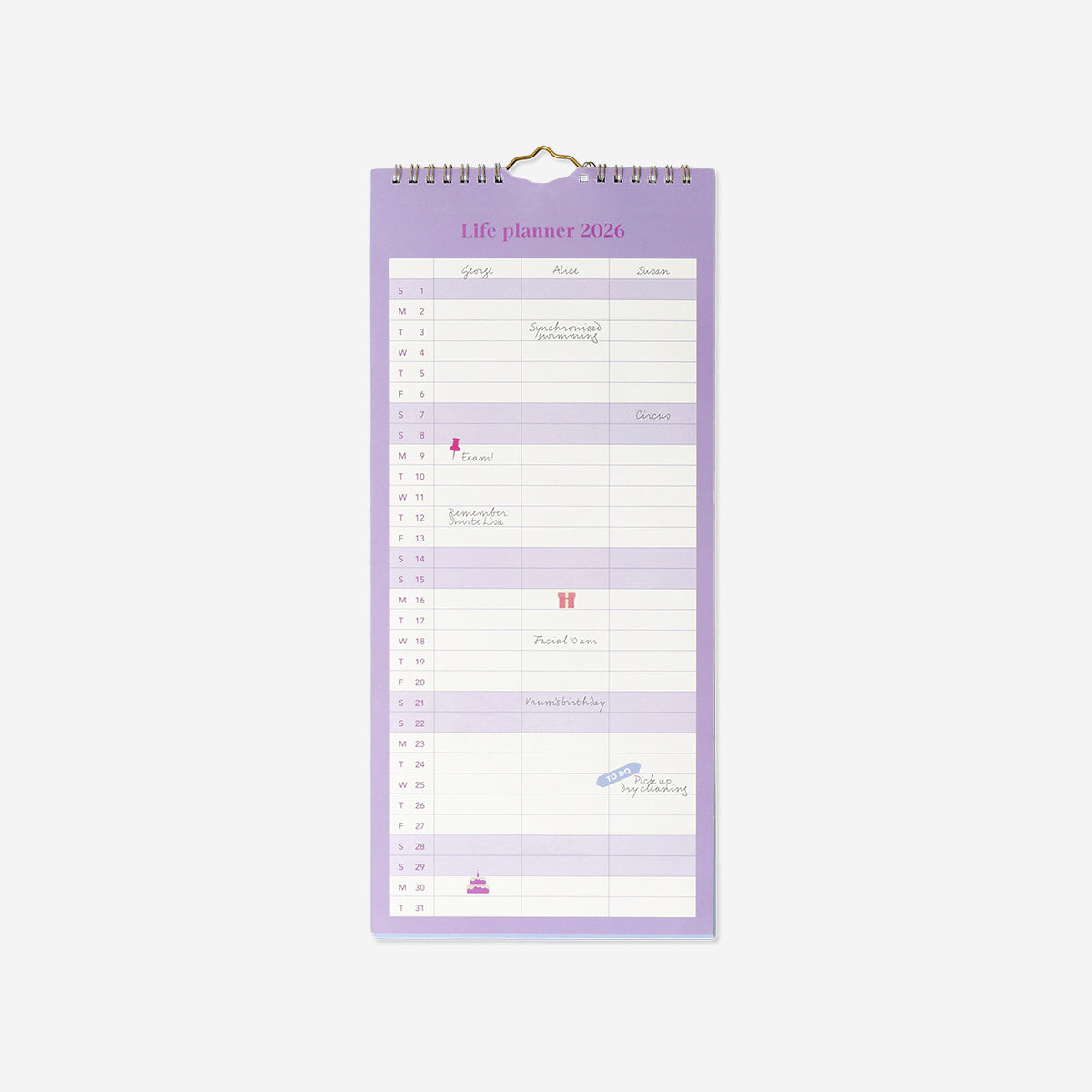 Flying Tiger Copenhagen Planlayıcılı Mor 2026 Duvar Takvimi