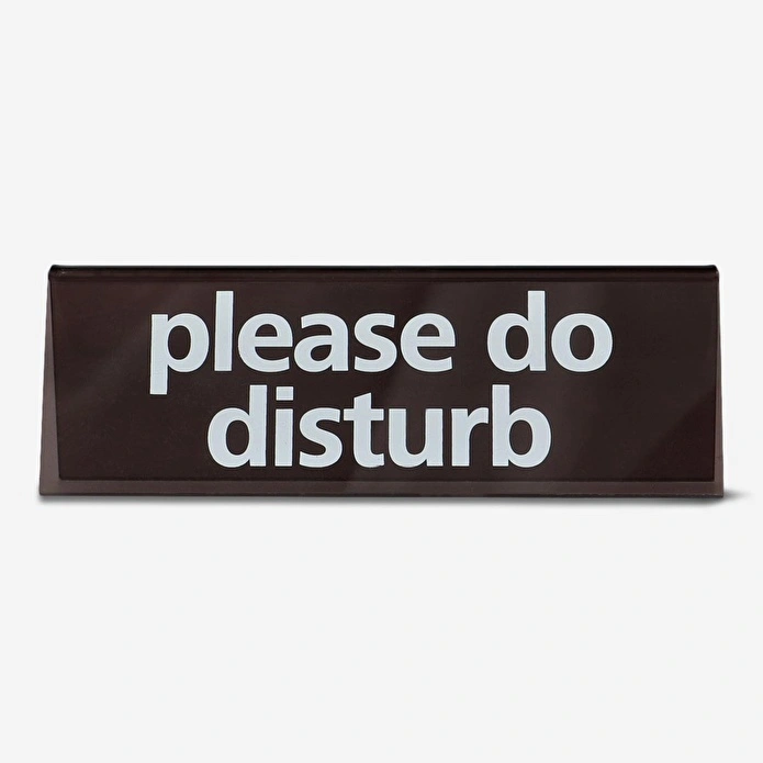 "Please Do Disturb" Yazılı Siyah Masaüstü Tabela, ofis veya çalışma alanınıza eğlenceli ve dikkat çekici bir dokunuş ekler. Siyah renkli, şık tasarımı ile dikkat çekerken, üzerindeki neşeli yazı, çevrenizdekilere eğlenceli bir şekilde mesaj verir. Bu tabela, çalışma sırasında odaklanmak isteyenlere ya da kısa bir mola isteyenlere yönelik eğlenceli bir hatırlatıcıdır.