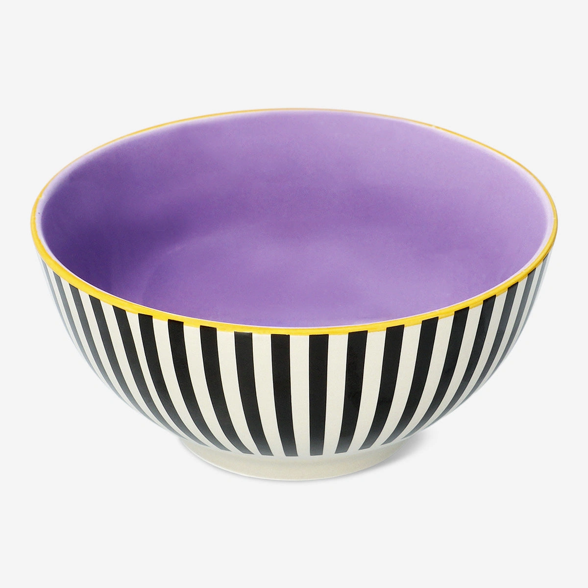 Siyah Beyaz Çizgili Seramik Kase 13,7 cm mutfak koleksiyonunuza modern bir dokunuş katar. 6 x 13,7 cm ölçülerindeki bu şık kase, cesur çizgili tasarımı ve renkli iç kısmı ile her sofrada dikkat çeker. Atıştırmalıklar, çorbalar veya garnitürler için mükemmel olan bu kase, günlük kullanımda hem işlevsel hem de şık bir çözüm sunar.