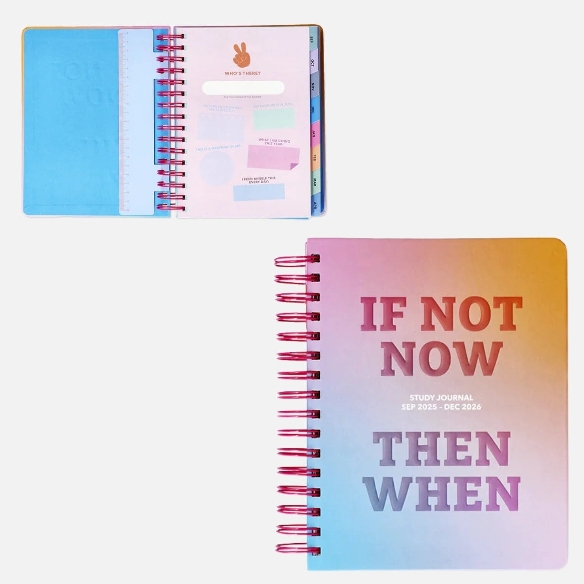 Spiralli Akademik Ajanda , uzun vadeli planlamalarınızı düzenlemek için mükemmel bir araçtır. 2025 Eylül ayından 2026 Aralık ayına kadar olan dönemi kapsayan bu ajanda, akademik takviminizi kolayca yönetmenize yardımcı olur. Üzerinde "If not now, then when?" yazısı bulunan kapak tasarımı, motive edici bir mesaj sunarak sizi harekete geçirmeye teşvik eder.