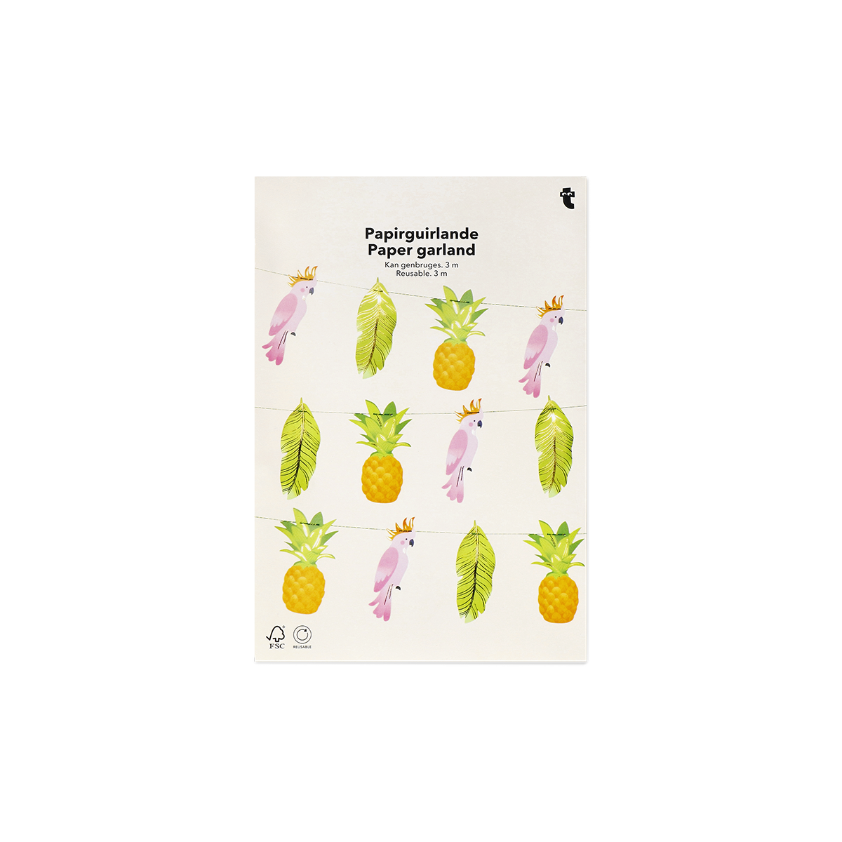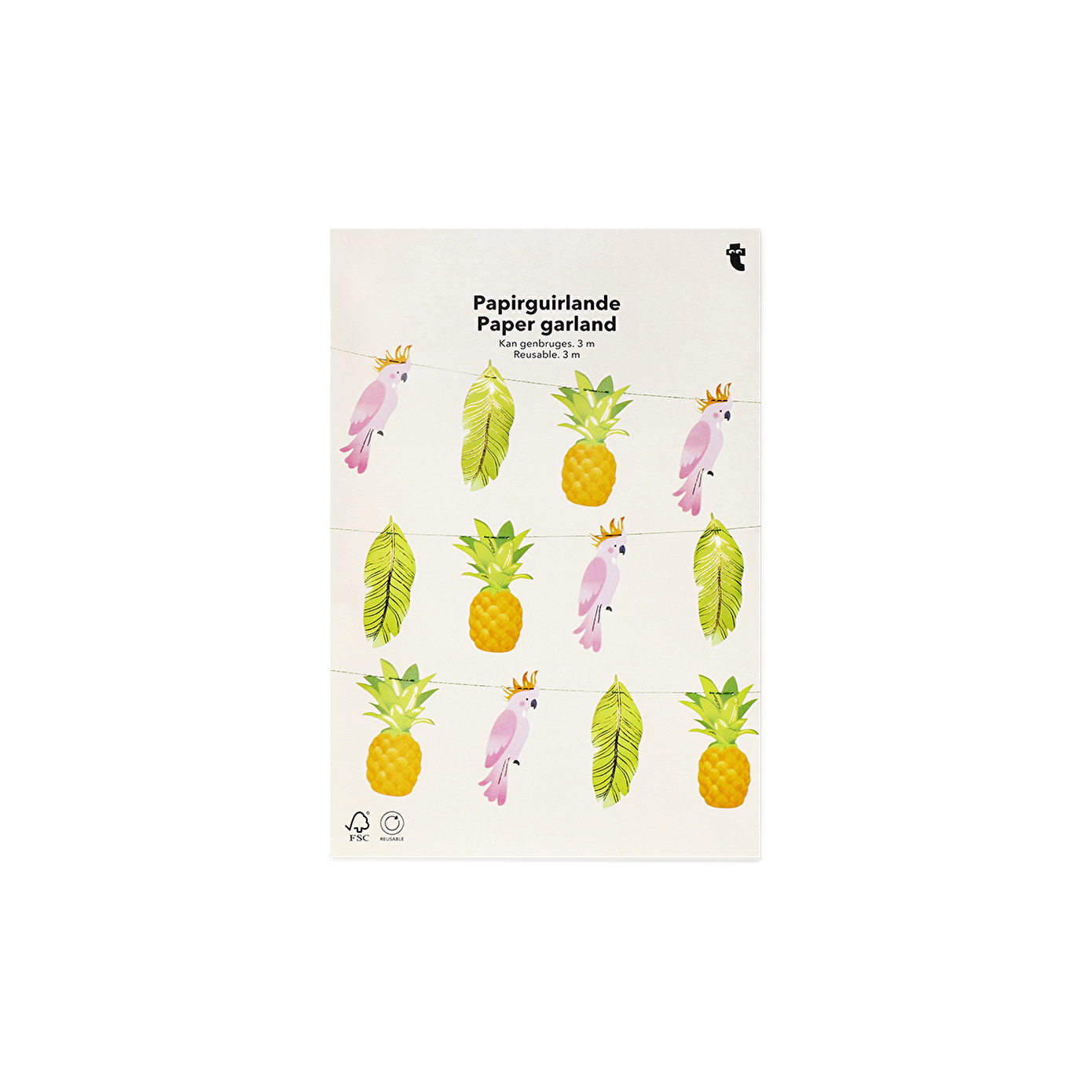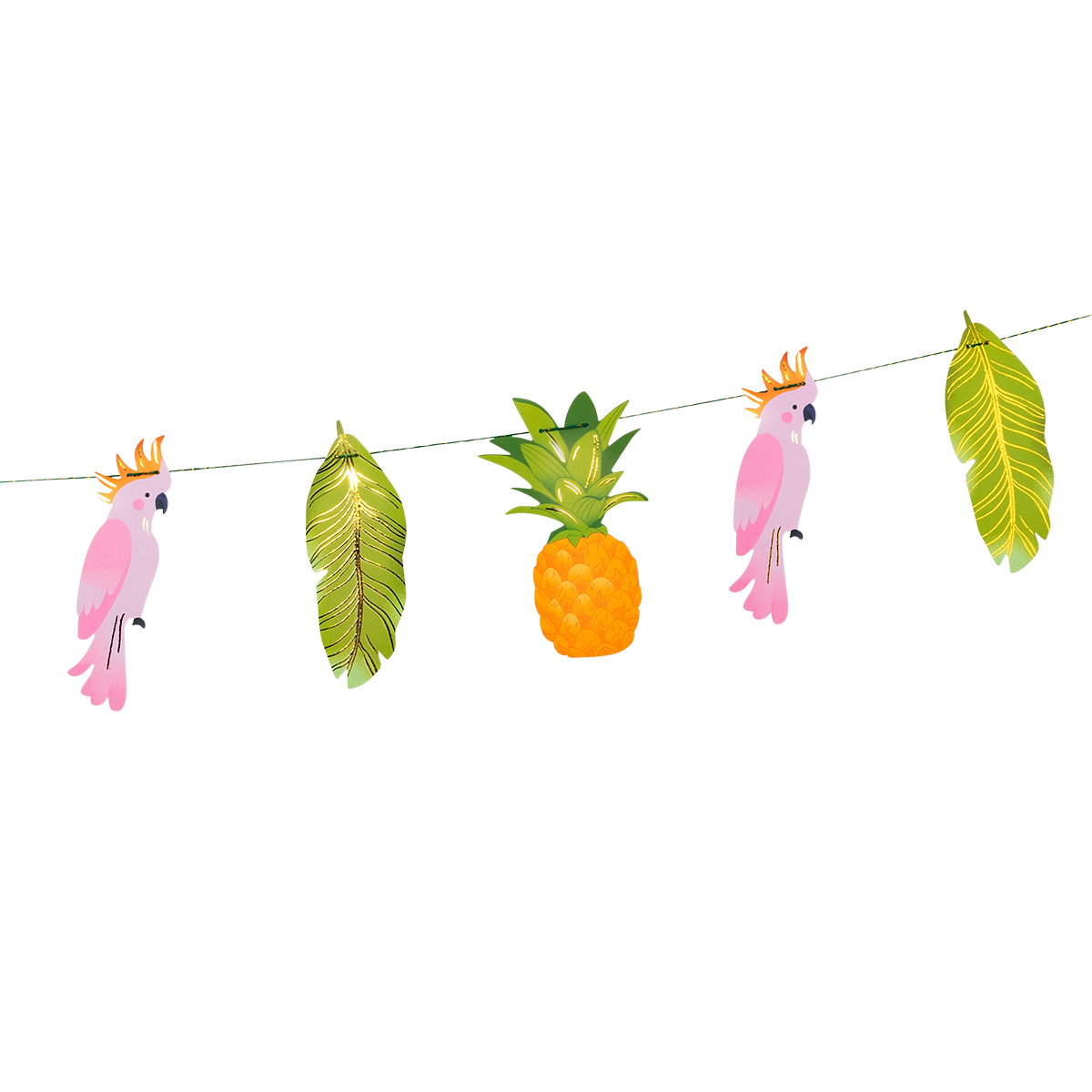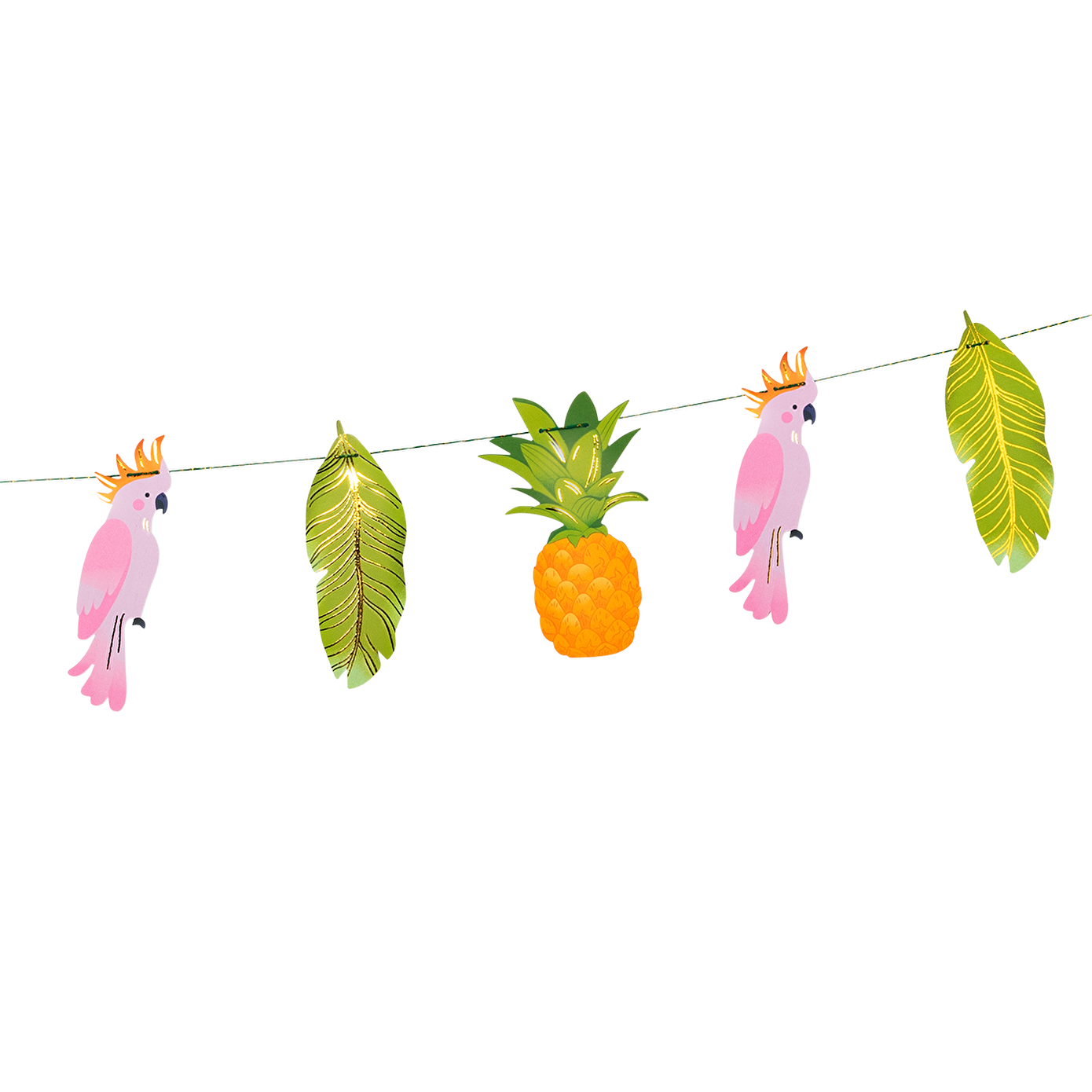 Tropik Temalı Asılabilir Kağıt Süs, ananas, papağan ve yaprakların eğlenceli bir karışımını içeren bu kağıt çelenk ile şenlikli ve tropikal bir atmosfer yaratın. Yaz partileri, doğum günleri veya temalı etkinlikler için mükemmel olan bu renkli dekorasyon, her alana canlı bir dokunuş katarken kutlamalarınıza eğlenceli ve tropikal bir hava katar. Pamuk ve kağıttan üretilen çelenk, 300 x 18,2 cm boyutlarında olup, duvarlar, kapı girişleri veya parti masalarına asmak için ideal boyuttadır.