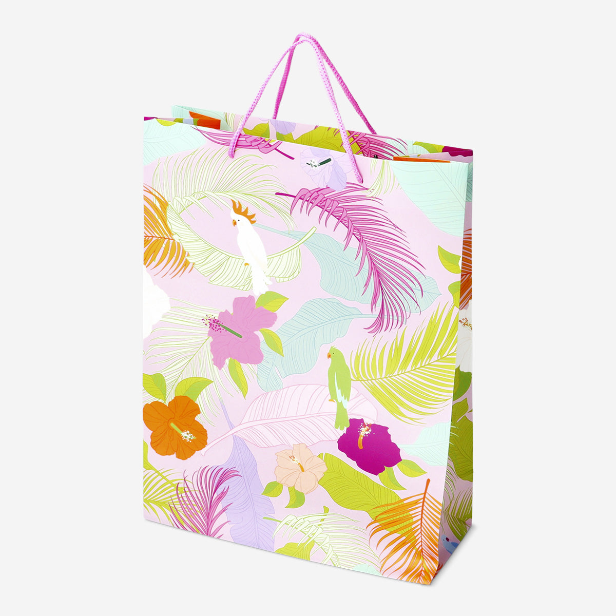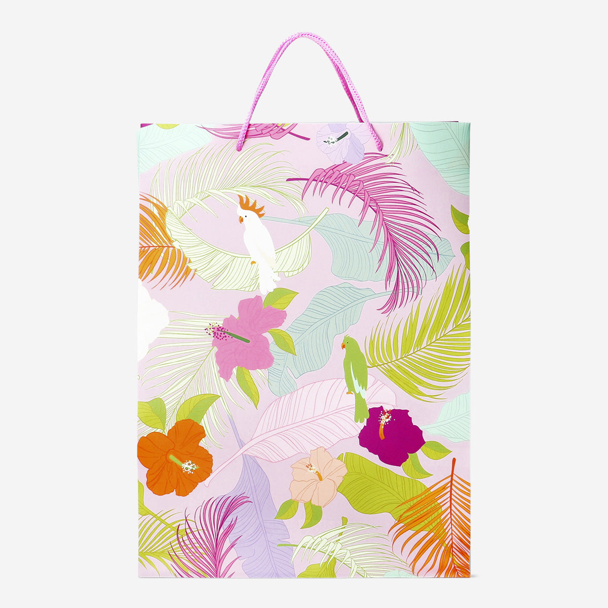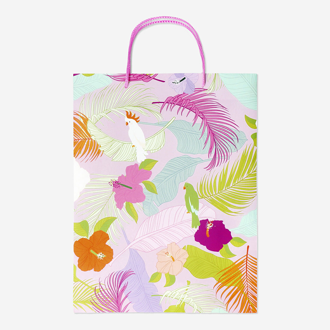 Tropikal Yaprak Desenli Hediye Çantası, canlı tropikal desenlerle hediye vermeyi daha da özel hale getirir. Doğum günleri, kutlamalar veya parti hediyeleri için mükemmel bir tercih olan bu çanta, her duruma eğlenceli ve renkli bir dokunuş katar. Parlak, çok renkli tropikal yaprak ve çiçek desenleriyle tasarlanmış bu çanta, hediyelerinize taze ve canlı bir hava katar, sevdiklerinize olan düşünceliğinizi şık bir şekilde yansıtır.