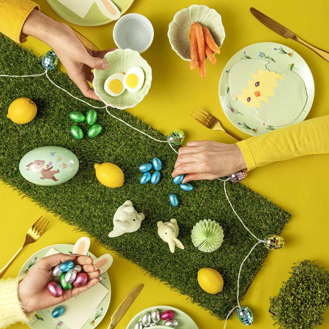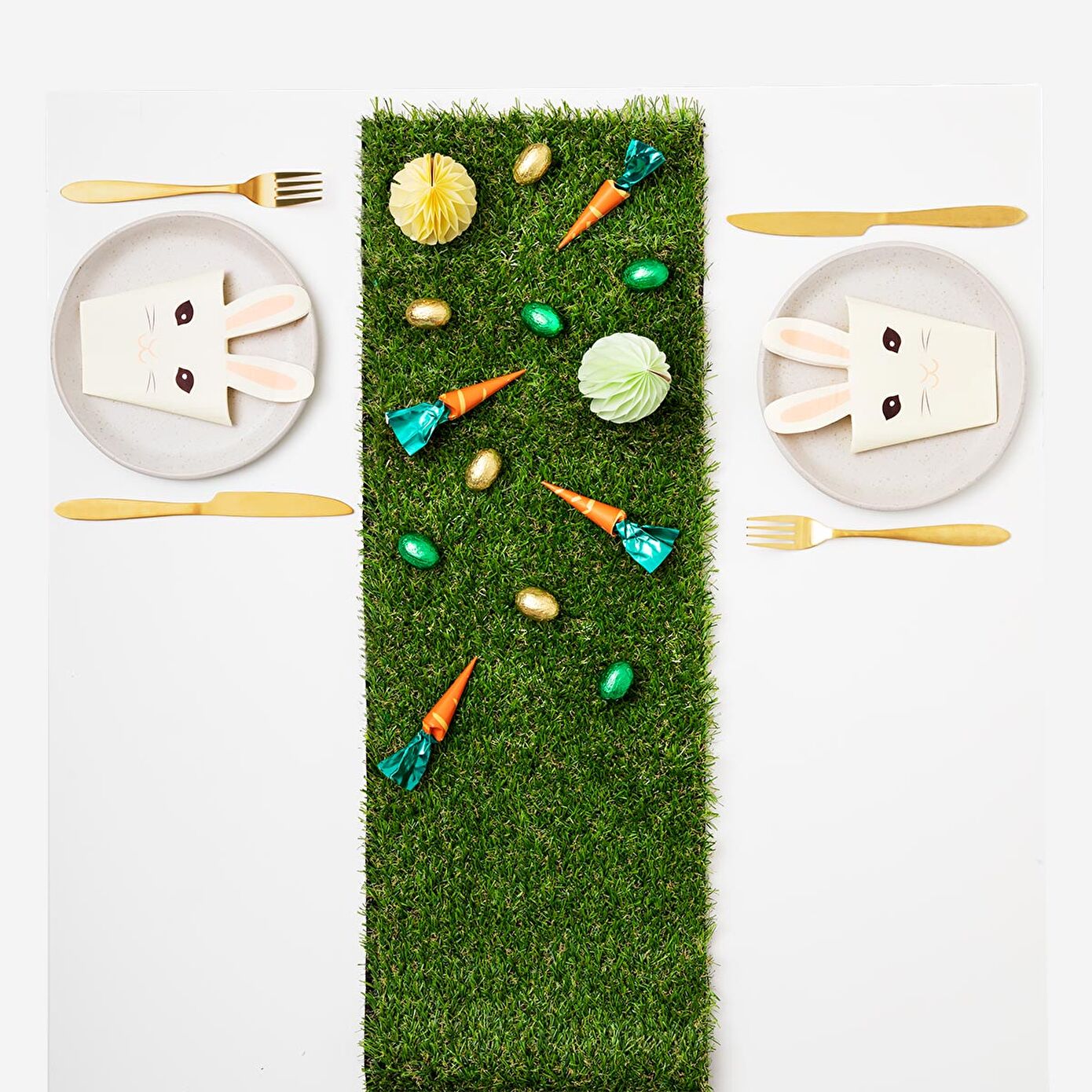 Hem iç mekanlarda hem de açık hava toplantılarında kullanabileceğiniz Yapay Çim Şeklinde Runner 25 cm x 75 cm misafirlerinize sıcak ve davetkar bir atmosfer sunar. Bu çok yönlü runner ile Paskalya brunch'ınız veya diğer tatil yemeklerinizde şık bir dokunuş yaratın ve sofranızı daha özel hale getirin.