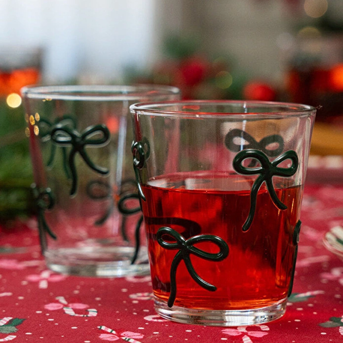 Yeşil Fiyonklu Cam Bardak, kabartmalı fiyonk detaylarıyla süslenmiş zarif tasarımı sayesinde sofralarınıza sade ama etkileyici bir şenlik havası katar. 8,6 x 8,6 x 10 cm boyutlarındaki bu cam bardak, 220 ml kapasitesiyle en sevdiğiniz içecekleri keyifle servis etmek için idealdir. Şeffaf camın üzerinde öne çıkan yeşil fiyonk motifleri, Noel sofralarına ya da günlük içecek sunumlarına neşeli bir zarafet ekler. Gıda kullanımına uygun yapısı sayesinde güvenli ve konforlu bir içim deneyimi sunar.