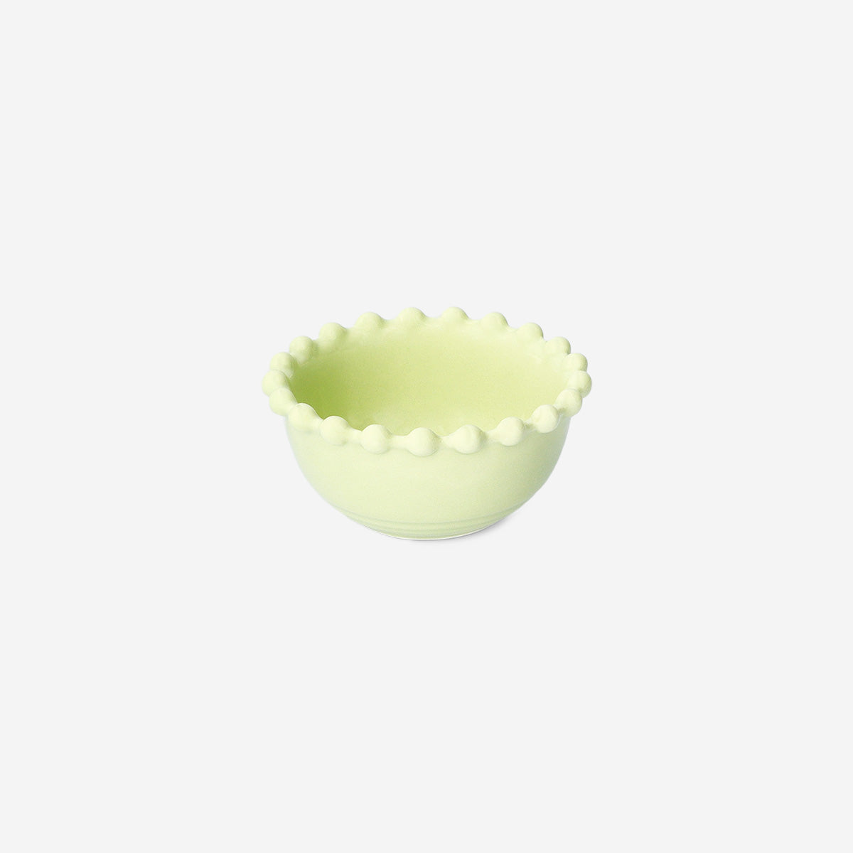 Yeşil Mini Baloncuk Kase, her sofraya eğlenceli ve zarif bir dokunuş katmak için mükemmel bir seçimdir. 8,5 cm çapında ve 4,2 cm yüksekliğindeki bu kase, soslar, dip soslar veya küçük atıştırmalıklar için ideal boyutta olup, tek kişilik porsiyonlar veya daha büyük tabaklarla birlikte servis etmek için kullanışlıdır. Ayırt edici kabarcık kenar tasarımı, her ortamda dikkat çekici bir görünüm sunarak sofra düzeninizi zenginleştirir.