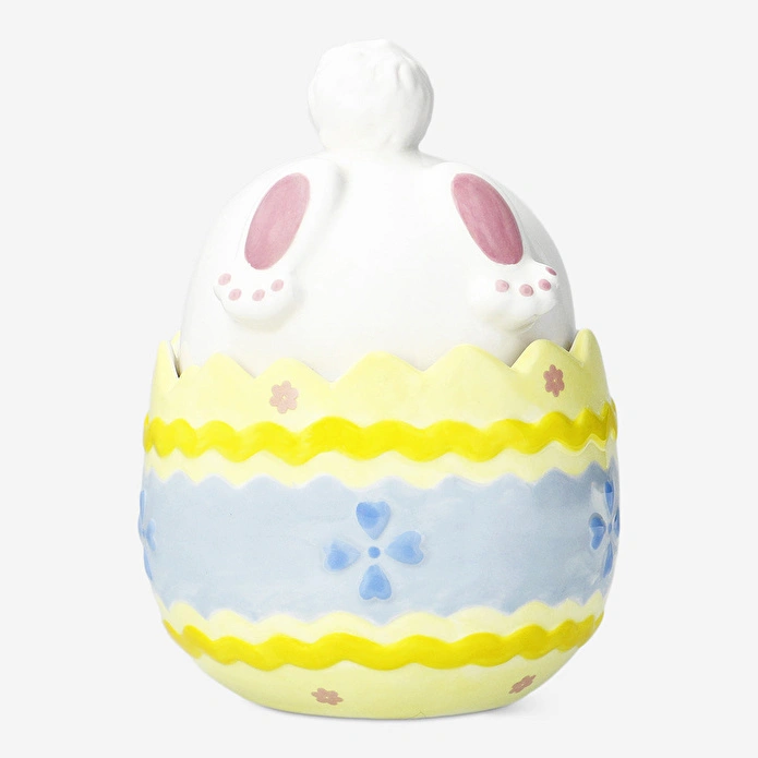 Yumurta Şeklinde Kapaklı Seramik Kavanoz, mutfağınıza hem eğlenceli hem de işlevsel bir dokunuş ekleyen mükemmel bir tasarımdır. 14,5 x 20,5 cm boyutlarındaki bu şirin kavanoz, Paskalya temalı tavşan şekilli kapağıyla sevimliliği ön plana çıkarırken, kurabiye, atıştırmalık veya diğer ikramları saklamak için idealdir. Seramikten üretilmiş olan bu kavanoz, gıda saklama ihtiyaçlarınızı karşılamak için mükemmel bir çözüm sunar.