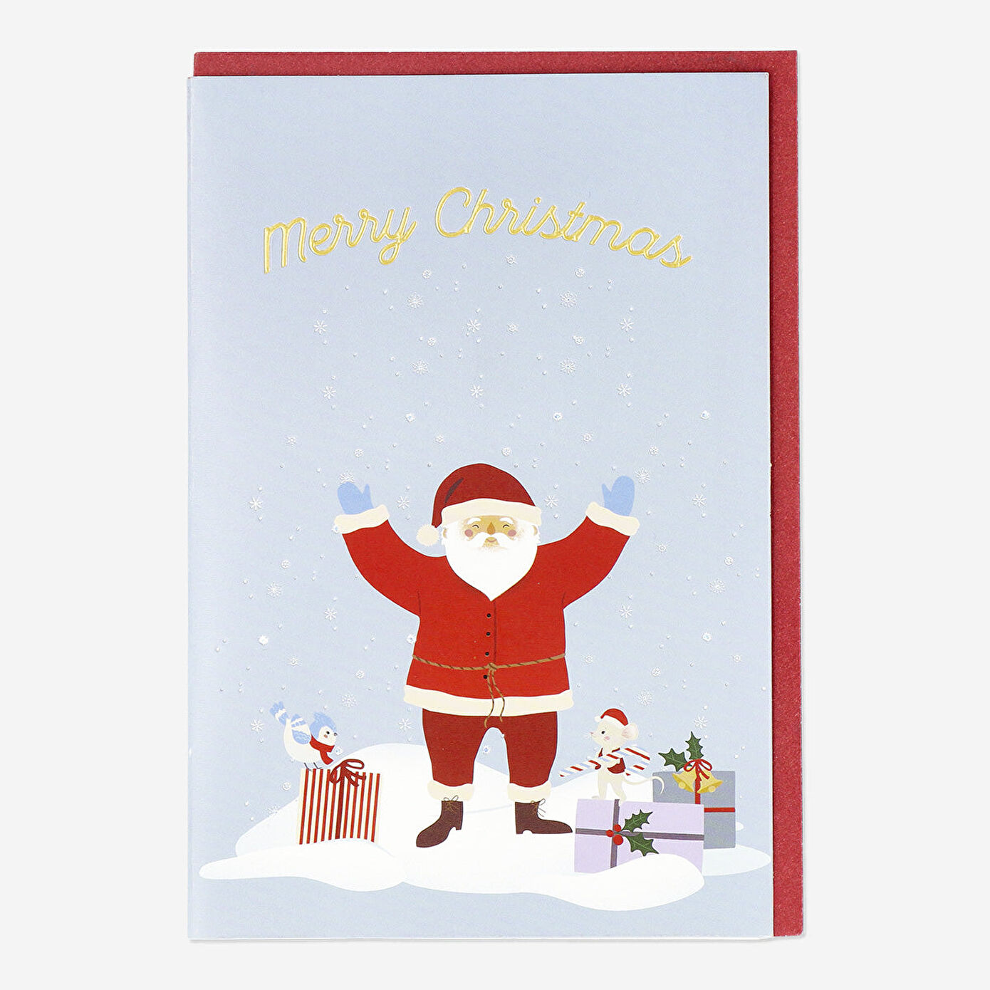 Noel Baba Desenli Kart Seti, sevdiklerinize neşe ve mutluluk göndermek için mükemmel bir seçimdir. Set, her biri karla kaplı bir arka planda neşeli bir Noel Baba illüstrasyonu içeren beş karttan oluşur. Kartlarda, "Merry Christmas" mesajı zarif bir altın yazı ile yer alır. Kağıttan üretilen bu çok renkli kartlar, 11.5 cm x 17 cm boyutlarında olup, kişisel yılbaşı dileklerinizi yazmak için geniş bir alan sunar.