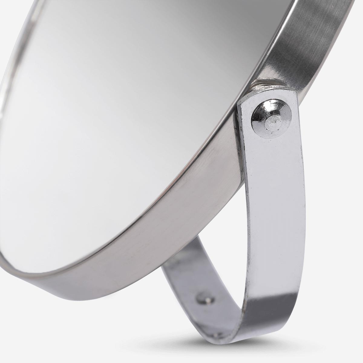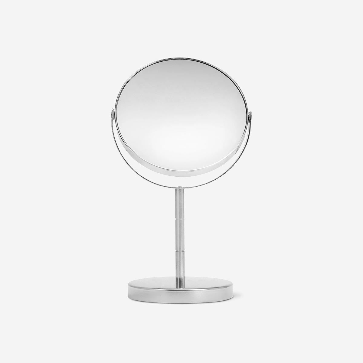 Gümüş kaplama ve metal tabanı, aynayı her makyaj masası veya masa üstüne sofistike bir dokunuş katar. Eğimli yapı, hassas görevler için idealdir ve büyütme özelliği, eyeliner sürme veya kaşları cımbızlama gibi ayrıntılara dikkat etmenizi sağlar.
