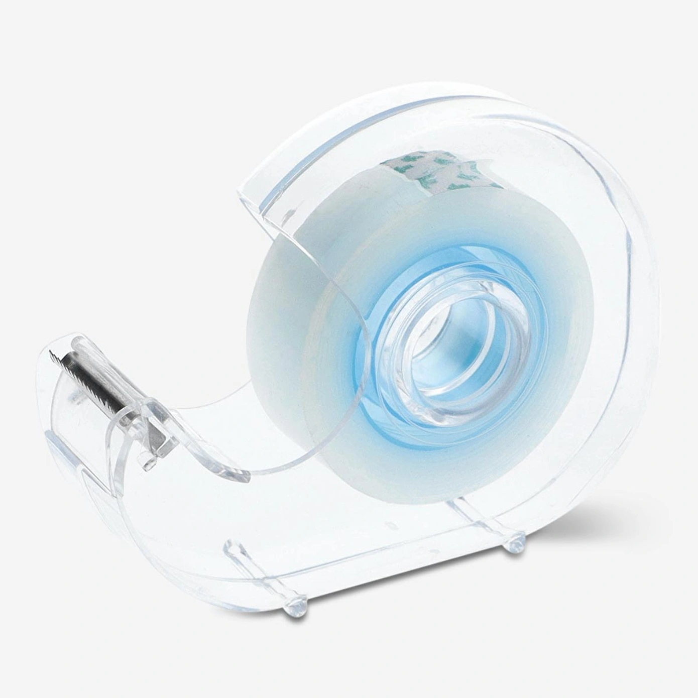 Şeffaf tasarımı, içindeki bantları kolayca görmenize olanak tanırken, mavi detaylar modern ve şık bir görünüm sunar. Kullanımı son derece basit olan bu bant kesici, bantları hassas bir şekilde kesmenizi sağlar ve size temiz, düzgün kesim sağlar.