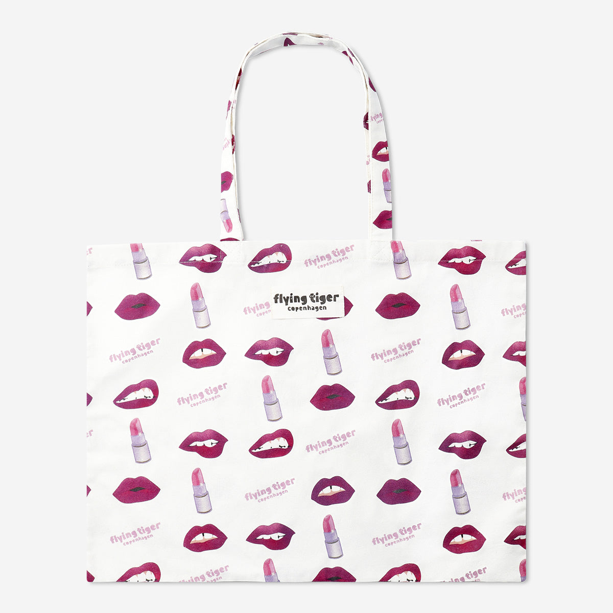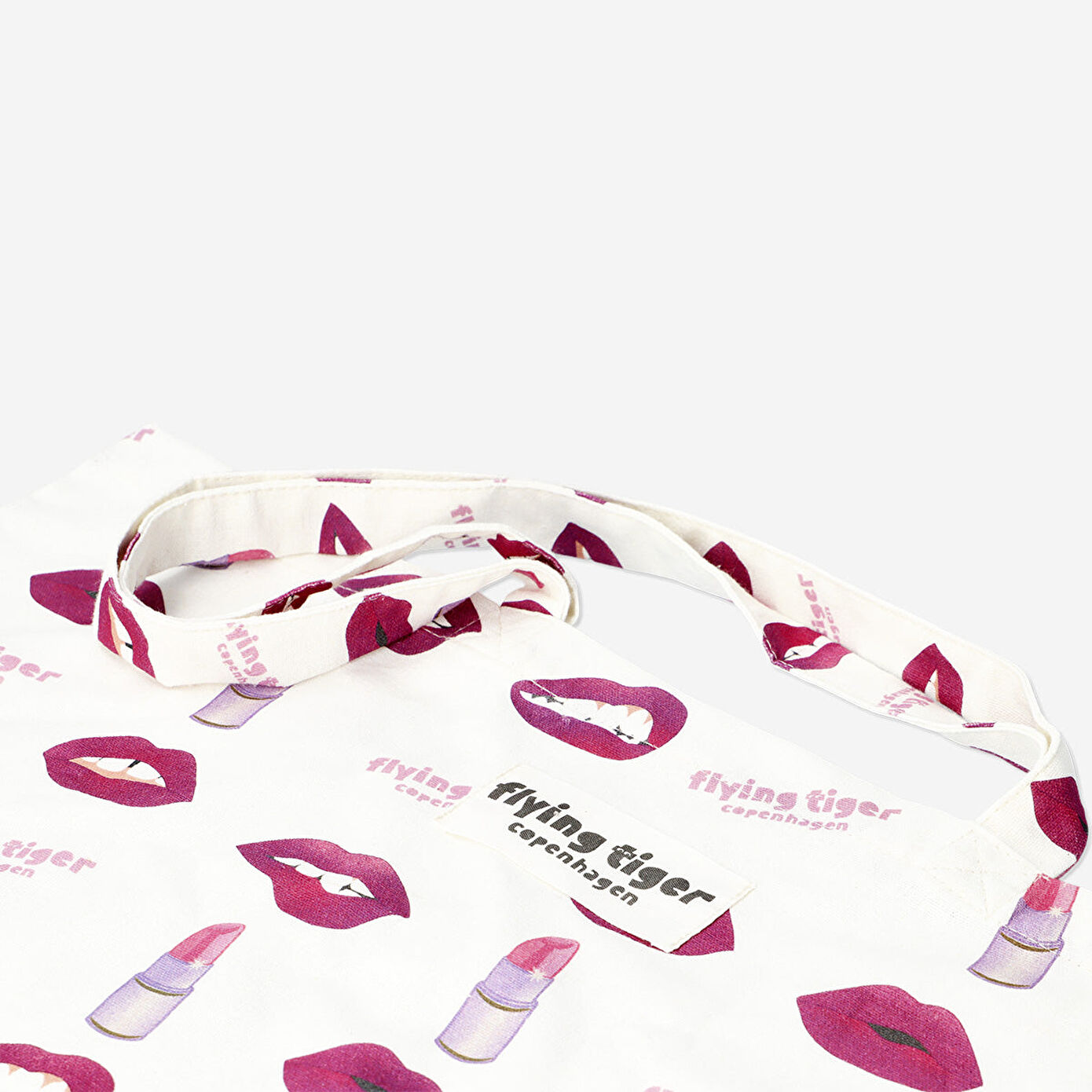 Çantanın üzerinde yer alan canlı dudak tasarımı, hem dikkat çekici hem de şık bir stil ifadesi sunar. Bu çok renkli ve yeniden kullanılabilir çanta, alışveriş, okul gezileri veya günlük kullanım için mükemmel bir seçenektir. Sağlam pamuklu malzeme, dayanıklılığı ve pratikliği garanti ederken, çantanın eğlenceli ve stil sahibi baskısı, kişisel tarzınızı vurgular.