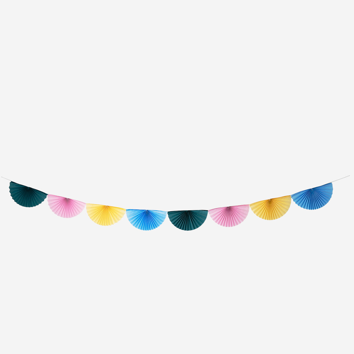 Parti alanını bu çok renkli kağıt yelpaze asma süs ile canlandır! 200 cm uzunluğundaki bu neşeli süs, rengarenk tasarımıyla anında kutlama havası yaratır. Her biri 14 cm genişliğinde olan kağıt yelpazeler, partinin arka planına eğlenceli ve göz alıcı bir dokunuş katar.