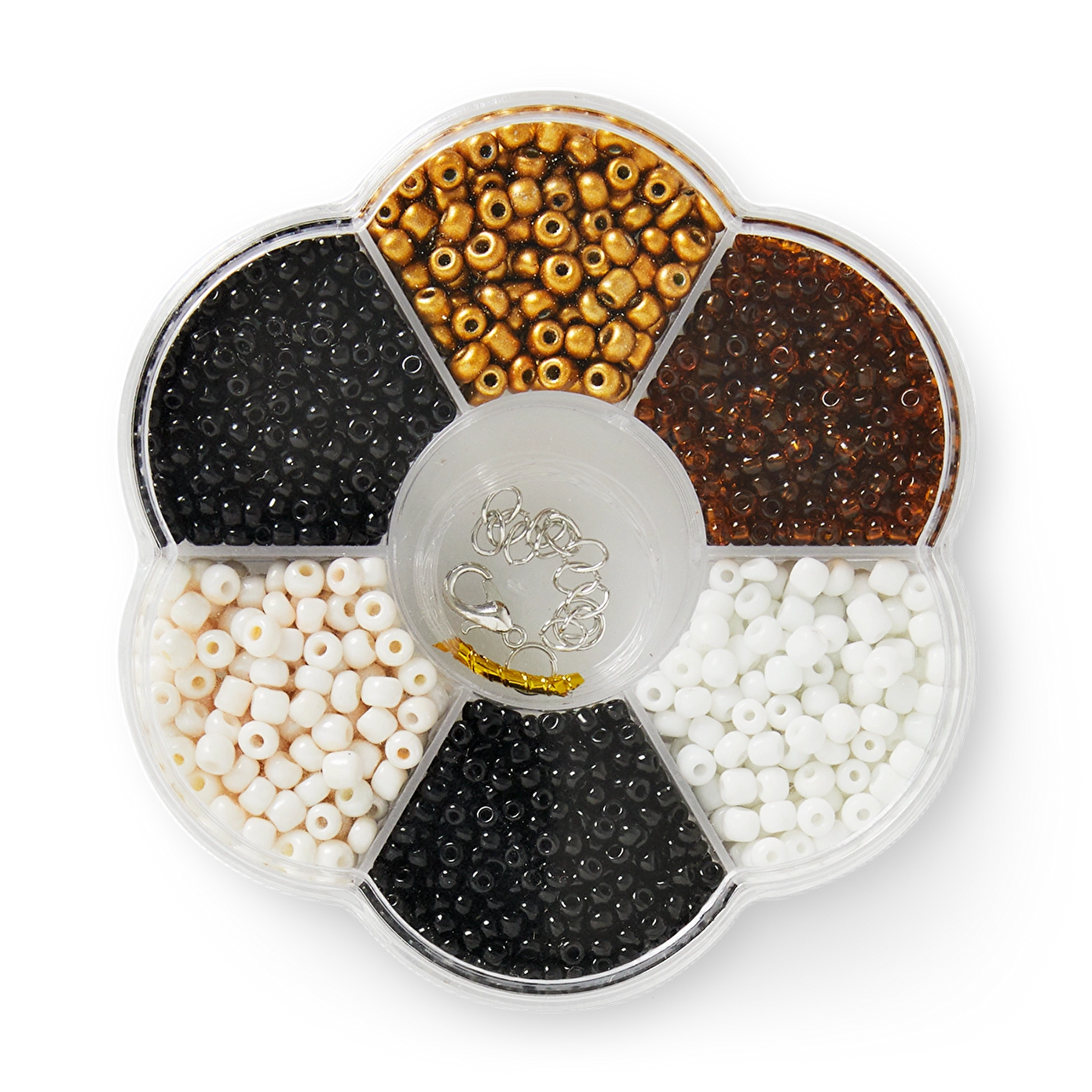 Siyah Beyaz Cam Boncuk Seti eğlenceli takılar ve dekoratif ürünler yapmak için ideal bir seçenektir. Bu çok yönlü set, uyumlu siyah ve beyaz tonlarında altı farklı cam boncuk stili sunar ve her stil, benzersiz dokular ve yüzeyler sağlayarak çeşitli ve güzel tasarımlar oluşturmanıza olanak tanır. Set, çiçek şeklinde kullanışlı bir kutuda gelir ve ihtiyacınız olan tüm temel malzemeleri içerir.