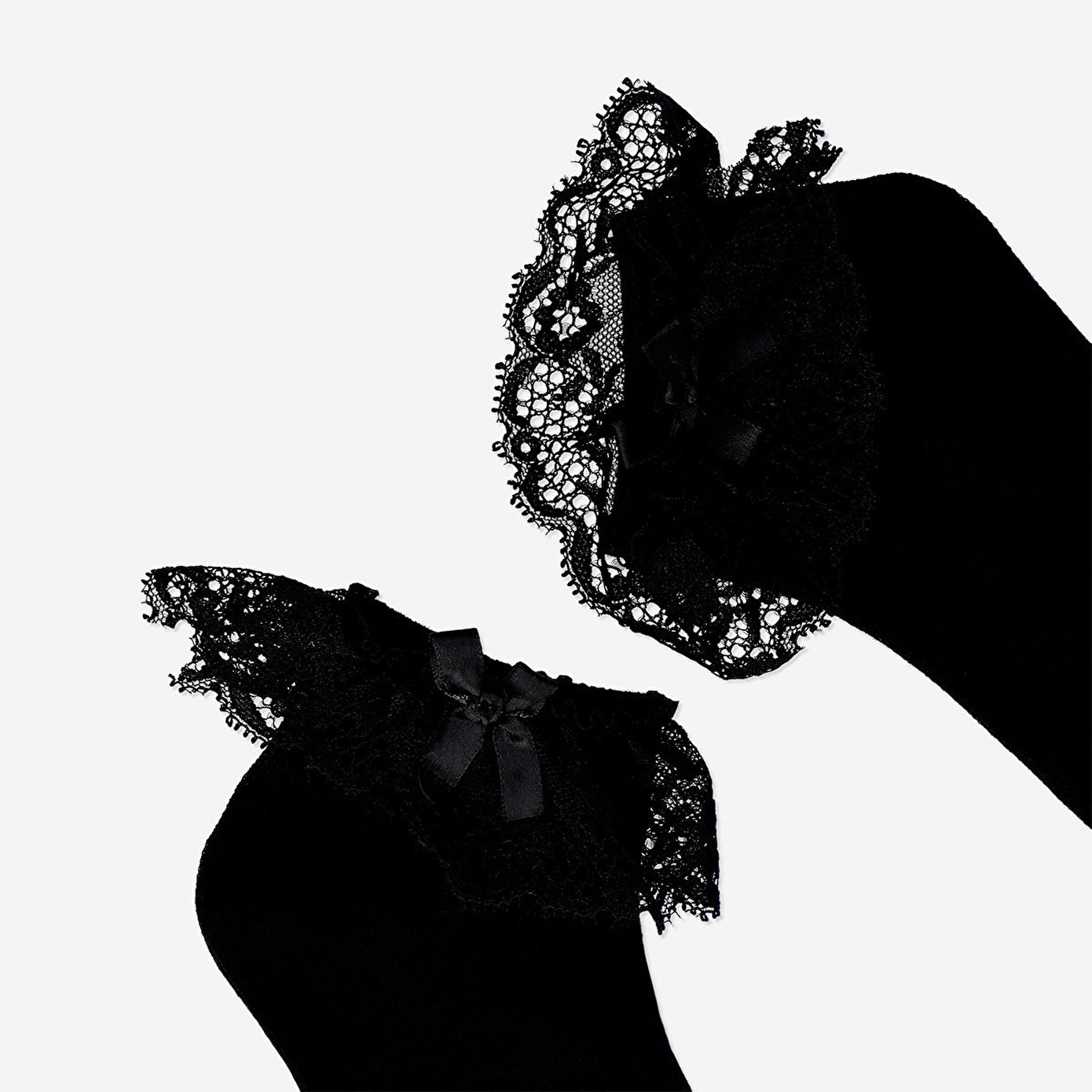 Gotik Tasarımlı Siyah Çorap, 39/41 numara ayaklar için tasarlanmıştır. %77 pamuk, %21 geri dönüştürülmüş polyester ve %2 elastan karışımından üretilmiştir. Gotik tasarımı, ince dantel detayları ve küçük bir kurdele ile kıyafetlerinize şıklık katar, günlük giysilerinizi veya Halloween kostümünüzü tamamlar.
