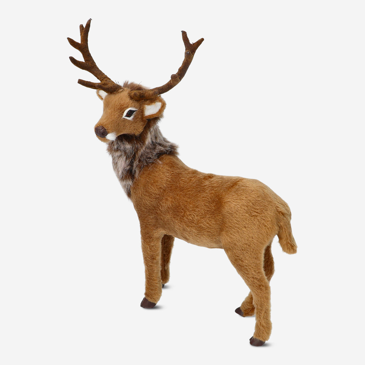 Bu dekoratif boynuzlu geyik figürüyle evinize orman atmosferini getirin! Plastik malzemeden üretilen bu geyik, 25,5 cm yüksekliği ve 21 x 25,5 x 8 cm ölçüleriyle dikkat çeker. Ayrıntılı boynuzları ve gerçekçi kahverengi dokusu ile iç mekanınıza rustik bir zarafet katıyor.