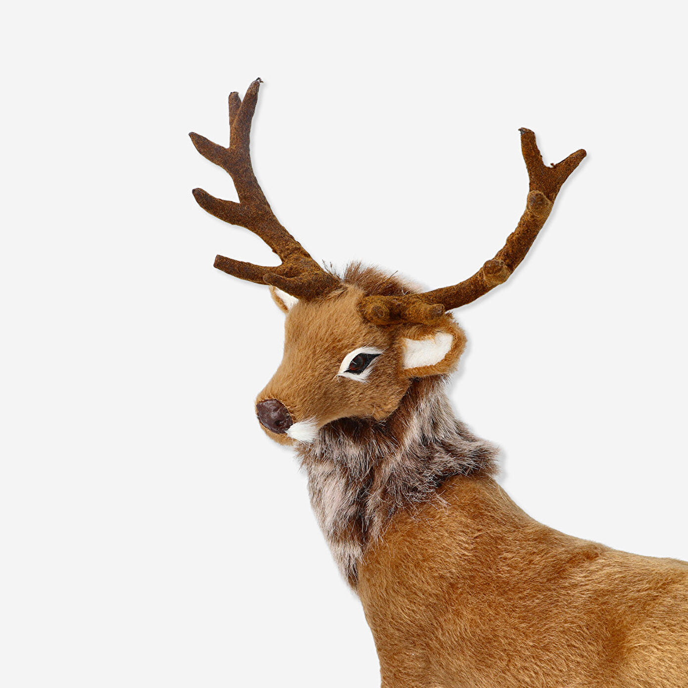 Şömine üzerinde, raflarda ya da yılbaşı masa süslemelerinde kullanabileceğin bu figür, doğa ve orman havasını evine taşır. Kış ormanlarının ruhunu yansıtan bu şirin geyik figürü, sezonluk dekorasyonunuza hoş bir dokunuş ekler.