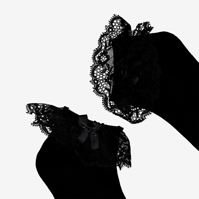 Gotik Tasarımlı Siyah Çorap, 36/38 numara ayaklar için tasarlanmıştır. %77 pamuk, %21 geri dönüştürülmüş polyester ve %2 elastan karışımından üretilmiştir. Gotik tasarımı, ince dantel detayları ve küçük bir kurdele ile kıyafetlerinize şıklık katar, günlük giysilerinizi veya Halloween kostümünüzü tamamlar.
