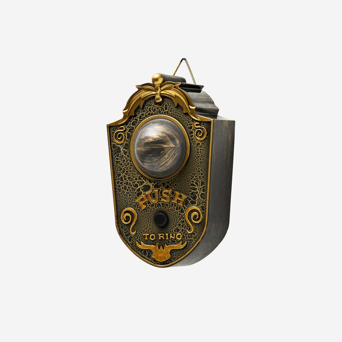 Altın Rengi Kapı Zili, Halloween dekorasyonunuza korkutucu bir dokunuş ekler. 11 x 18 x 4,5 cm boyutlarındaki bu plastik kapı zili, ışık, ses ve hareket efektleriyle misafirlerinizi ürkütür. Altın ve siyah renkleri, ürkütücü bir atmosfer yaratırken ziline görsel çekicilik kazandırır.