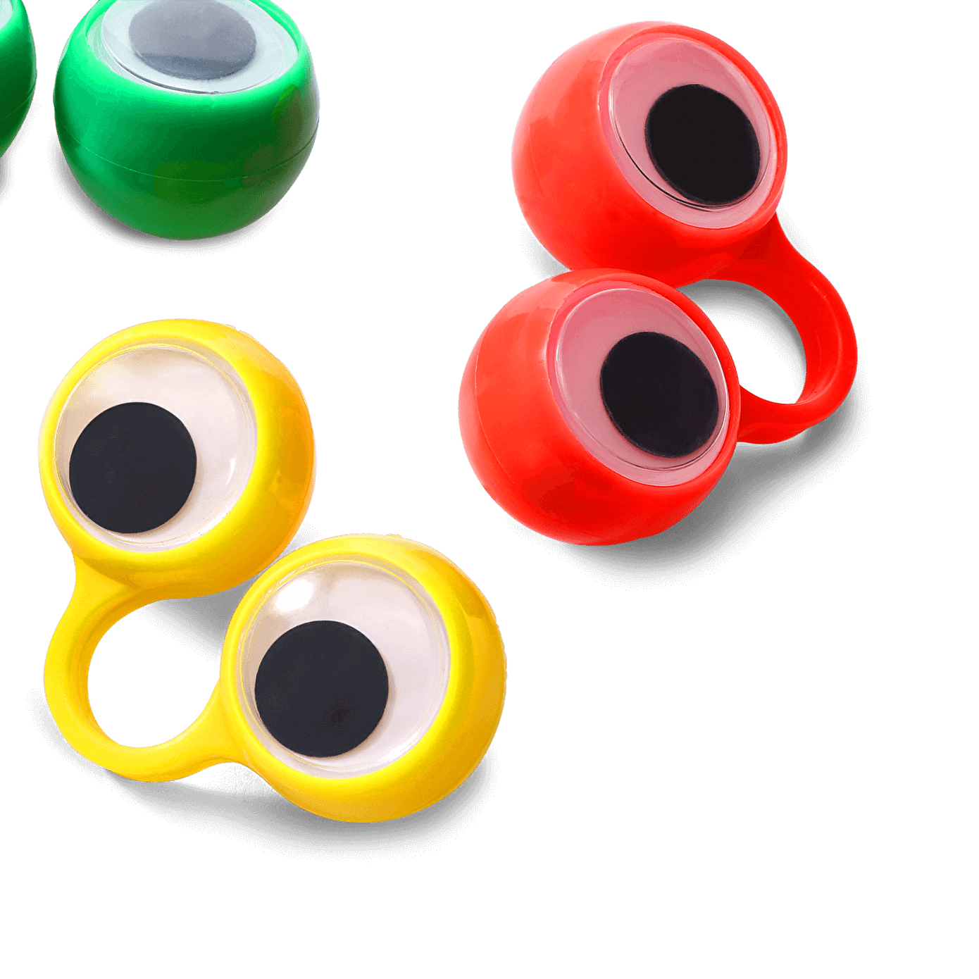 Göz Şekilli Yüzük Seti, her biri canlı renklerde dönen gözlere sahip 4 farklı yüzükten oluşur. Bu renkli yüzükler, hayal gücünüzü harekete geçirerek parmaklarınızı eğlenceli kuklalara dönüştürür. Yaratıcı oyunlar için ideal olan bu yüzükler, hem çocuklar hem de yetişkinler için eğlenceli bir deneyim sunar.