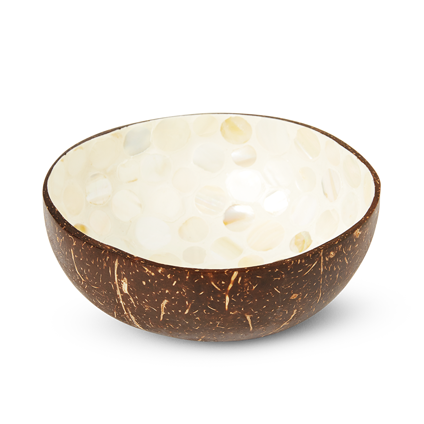 Bu şık Beyaz Sedef Görünümlü Hindistan Cevizi Kase, doğal Hindistan cevizi kabuğundan üretilmiş ve zarif sedef detaylarıyla süslenmiştir. 15 x 15 x 6 cm ölçülerindeki bu kase, hem estetik hem de fonksiyonel bir kullanım sunar. Dekoratif objeler için mükemmel olan bu kase, her mekâna doğal bir zarafet katar.