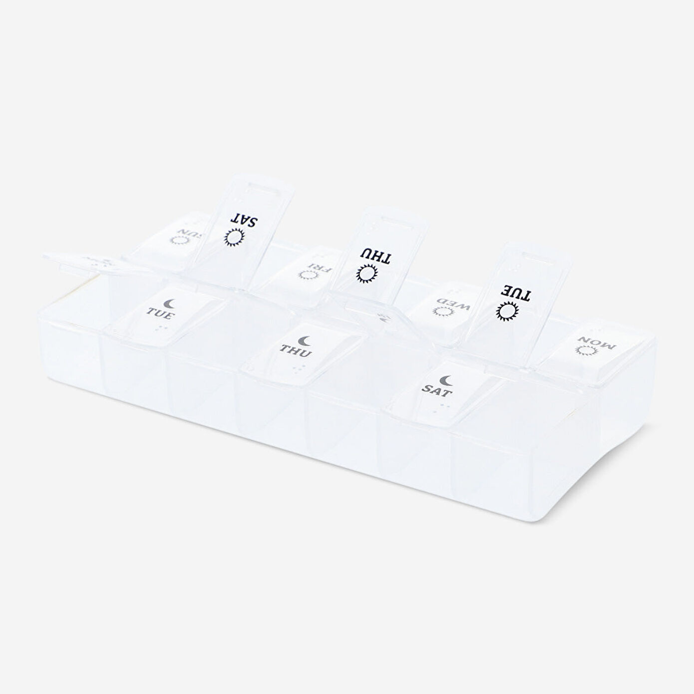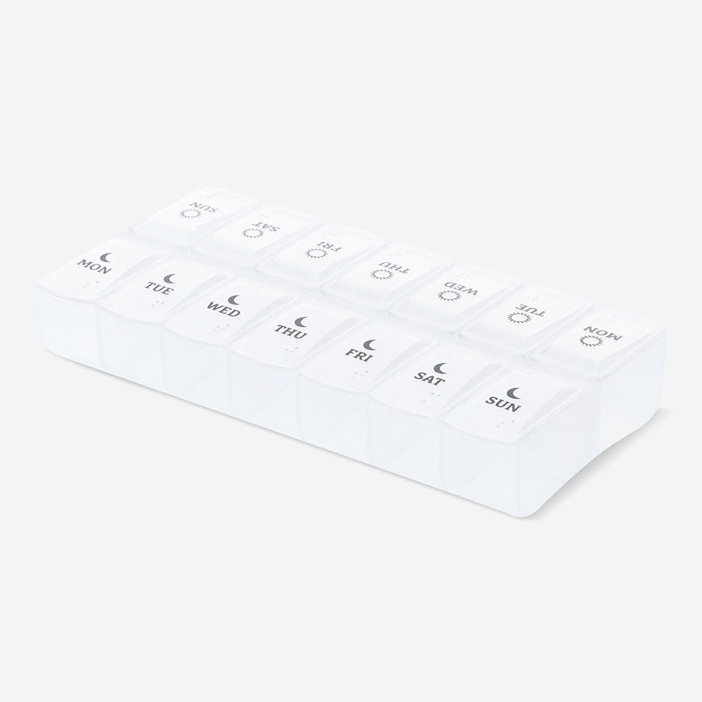 Haftalık İlaç Kutusu, sabah ve akşam dozlarını ayrı bölmelere ayırarak ilaçlarınızı düzenli bir şekilde takip etmenizi sağlar. Şeffaf tasarımı sayesinde, her bölmedeki ilaçları kolayca görebilir ve günlük ilaç alımınızı rahatça planlayabilirsiniz. Kompakt boyutu ile çantanızda rahatça taşıyabilir, evde ya da seyahatlerde kullanabilirsiniz.