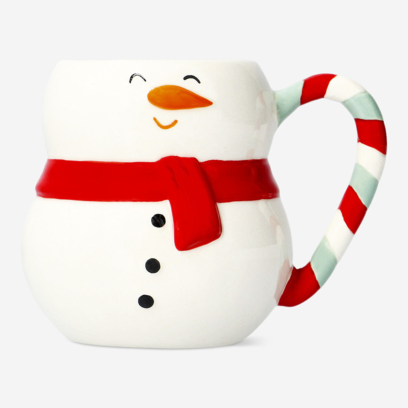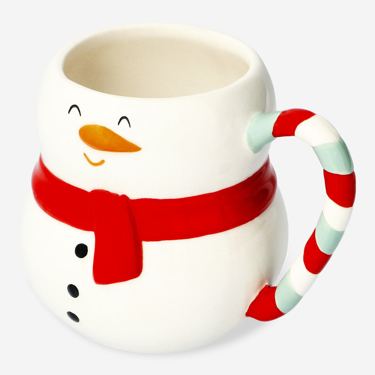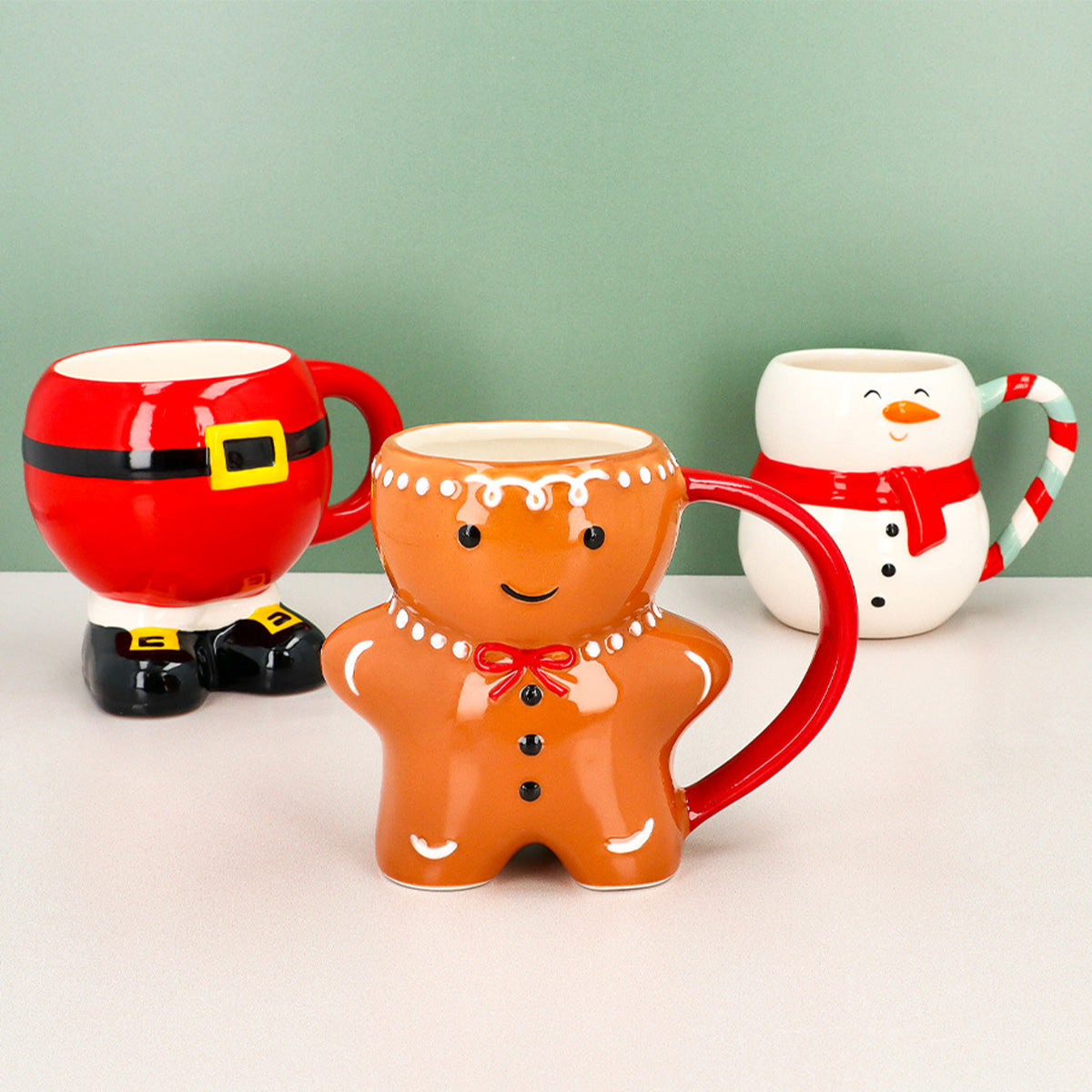 Kardanadam Şeklinde Seramik Kupa 400 ml, kışın büyüleyici ruhunu sofranıza taşıyan eğlenceli ve şenlikli bir parçadır. Klasik beyaz gövdesi, neşeli kırmızı atkısı ve şeker kamışı desenli kulpu ile bu kupa, hem dekoratif hem de işlevsel bir çekicilik sunar. 12,9 x 10 x 9,9 cm boyutlarındaki tasarımıyla 400 ml kapasiteye sahip olan bu kupa, kahve, sıcak çikolata veya kışa özel tarçınlı içecekler için mükemmel boyuttadır.