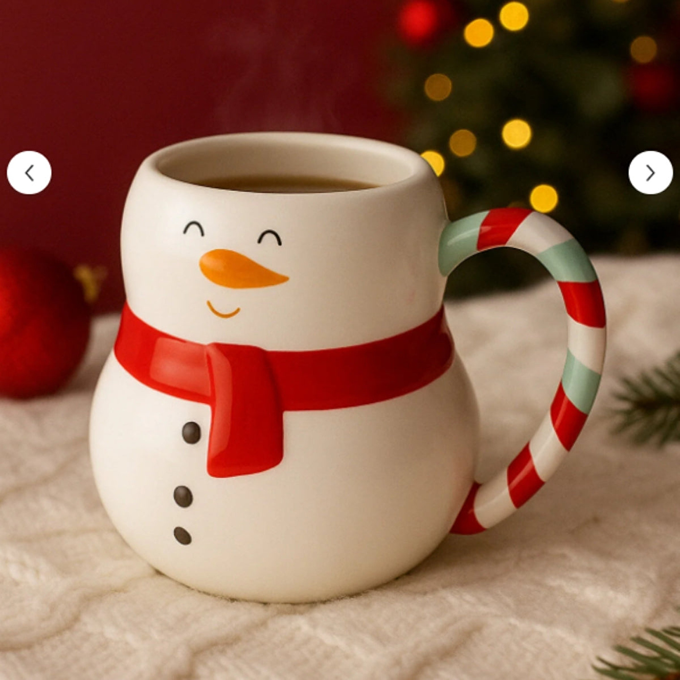 Sevimli detaylarıyla çocuklardan yetişkinlere kadar herkesin yüzüne gülümseme katacak, kış sabahlarını daha sıcak hale getirecek bir parçadır. Gıda güvenliği sertifikalı seramikten üretilmiş olan Kardanadam Şeklinde Seramik Kupa 400 ml, hem günlük kullanıma hem de özel günlerdeki şenlikli sunumlara uygundur. Kahvaltı sofralarında veya Noel kutlamalarında tatlı bir sürpriz olarak kullanılabilir, ayrıca sevdiklerinize hoş bir yılbaşı hediyesi olarak da sunulabilir. Dayanıklı yapısı sayesinde uzun süreli kullanım için idealdir ve mutfak koleksiyonunuza kış temalı zarif bir dokunuş ekler. Eğlenceli tasarımıyla, soğuk kış günlerinde içeceğinizi keyifle yudumlamanızı sağlar.