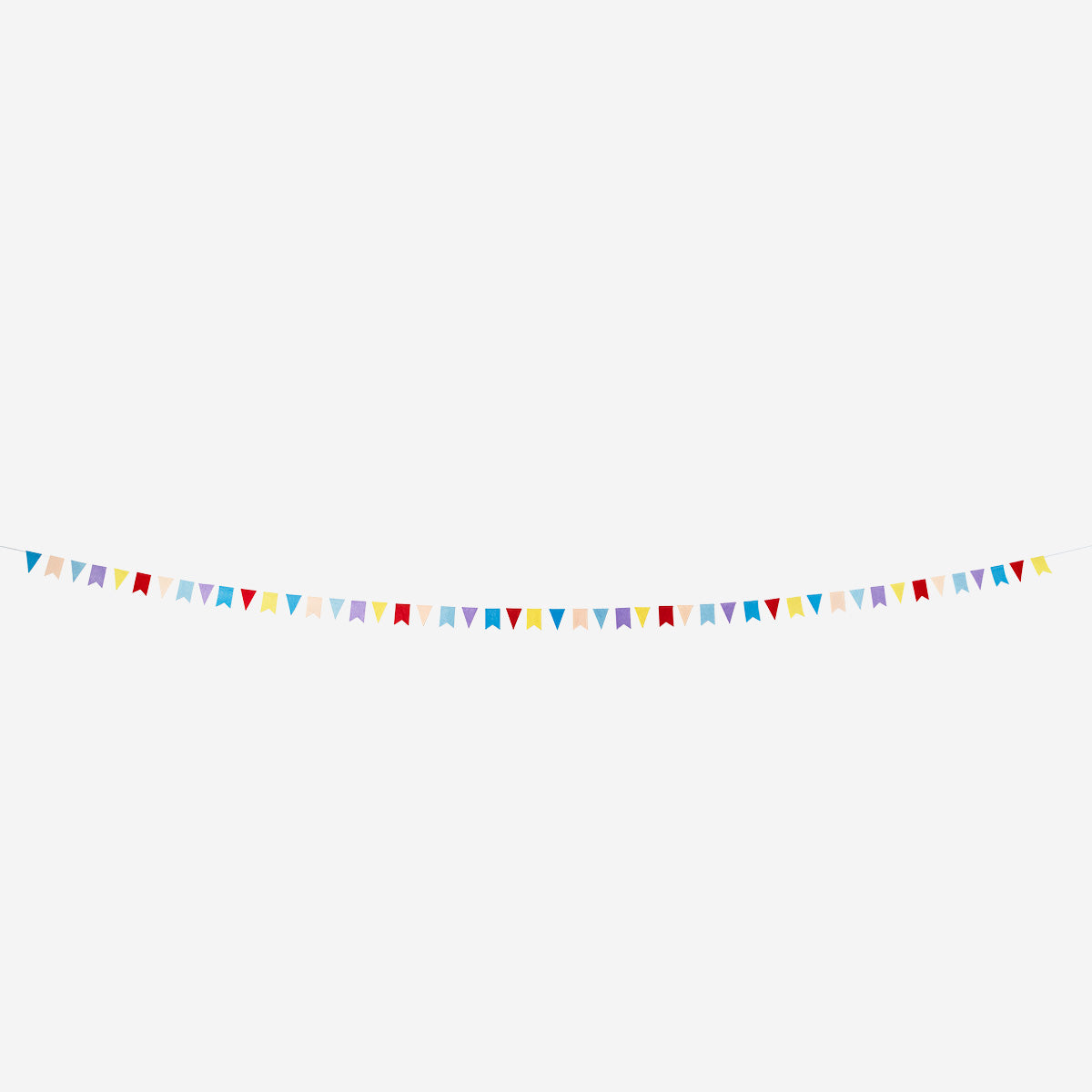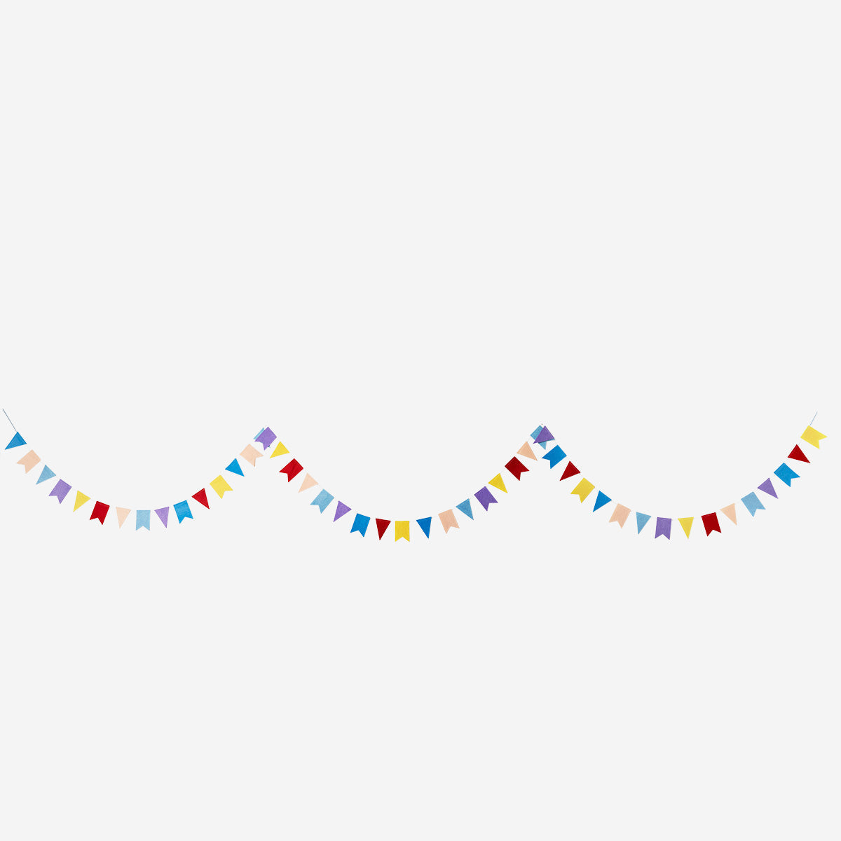 Mekanını bu canlı 4 metre uzunluğundaki keçe bayrak asma süs ile renklendir! Şirin bayraklarla süslenmiş bu renkli süs, %100 geri dönüştürülmüş polyesterden üretilmiş ve saf pamuk ipiyle tamamlanmıştır. Her türlü kutlama için mükemmel bir seçim olan bu bayrakları ipin etrafına asarak, partiye sıcak ve eğlenceli bir hava kat!