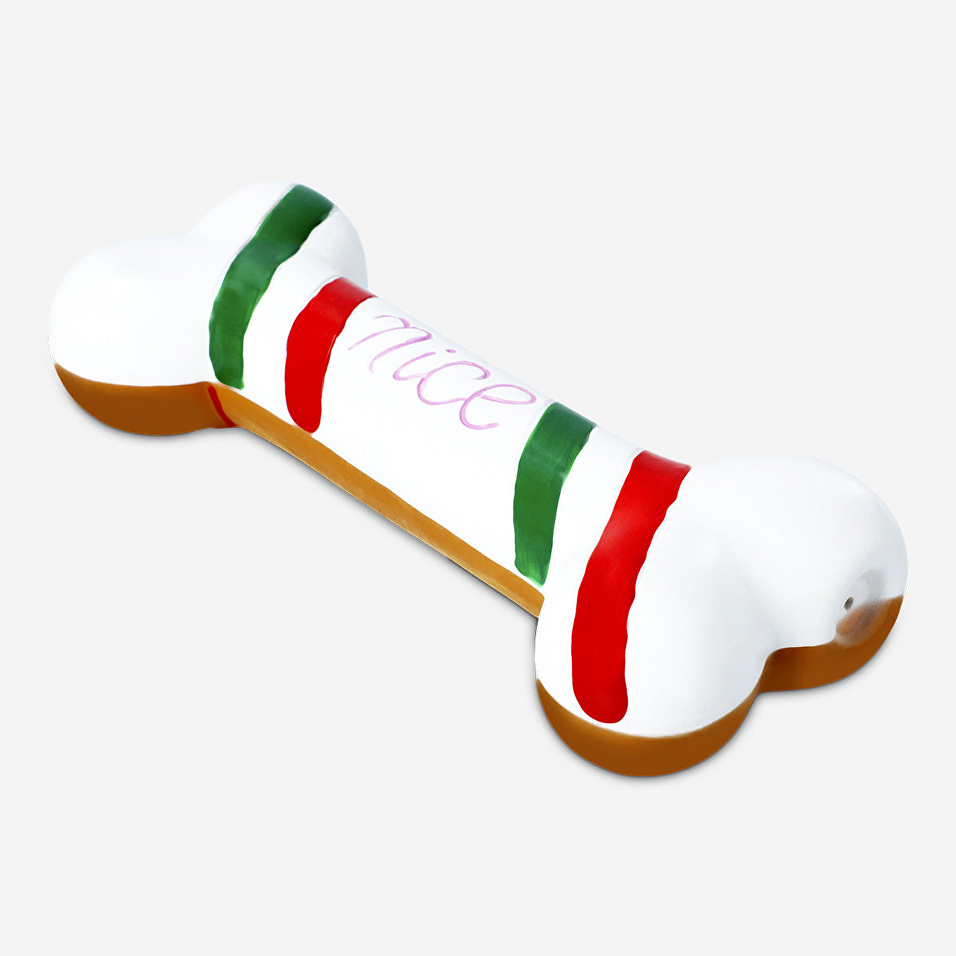 Evcil hayvanınıza bu yılbaşı temalı kemik oyuncak ile eğlenceli bir tatil neşesi katın. 22.7 x 4.9 x 9.3 cm ölçülerindeki bu çok renkli oyuncak, plastikten üretilmiştir ve eğlenceli çift taraflı bir tasarıma sahiptir. Bir tarafında "Nice" yazısı ile yılbaşına uygun kırmızı ve yeşil çizgiler bulunurken, diğer tarafında ise "Naughty" yazısı zencefilli kurabiye rengiyle yer alır. Tatil sezonu için mükemmel olan bu kemik oyuncak, evcil hayvanınızın oyuncak koleksiyonuna yılbaşı ruhunu ekler. Çiğneme ve getirme oyunları için ideal olan bu oyuncak, dostunuza tatil boyunca sonsuz eğlence sunar. Evcil hayvanınıza bu sevimli yılbaşı kemik oyuncakla bir hediye verin.