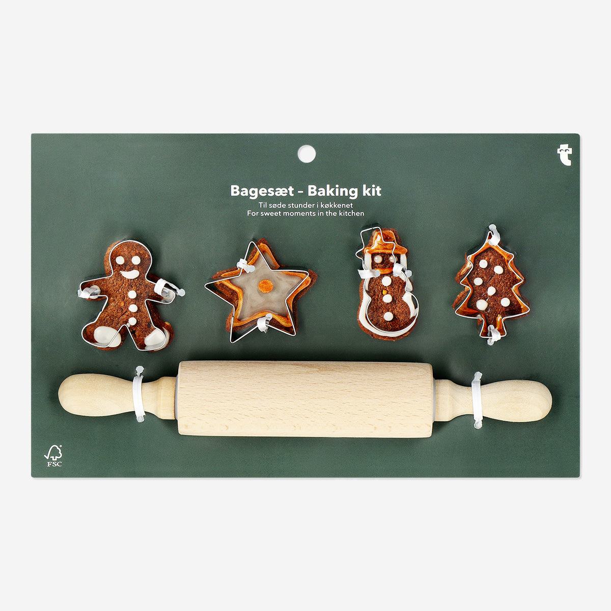 Bu tatlı tatları hazırlamak için mükemmel bir hediye: Kurabiye Kalıbı ve Merdane Seti! 23.3 x 3.5 cm boyutlarında bir ahşap oklava ve dört adet metal kurabiye kalıbı içeren bu 4 parçalı set, tatlılarınızı daha eğlenceli hale getirecek. Kalıplar, zencefilli kurabiye figürü, yıldız, kardan adam ve noel ağacı gibi tatil temalı şekillerle tasarlanmıştır, bu da tatil zamanı pişirme işini daha eğlenceli ve yaratıcı kılar.