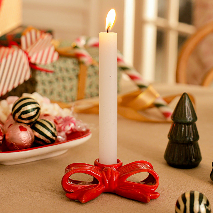 Bu zarif Kurdele Şekilli Kırmızı Mumluk, evinize şık bir yılbaşı atmosferi katmak için mükemmeldir. Seramikten üretilen bu kırmızı renkli mumluk, 11,5 x 3,1 x 9,4 cm boyutlarındadır ve yılbaşı dekorasyonunuza hoş bir dokunuş sağlar. Küçük mumlar için ideal olan bu mumluk, kurdele şeklindeki tasarımıyla her odaya sıcak ve davetkar bir ortam sunar.