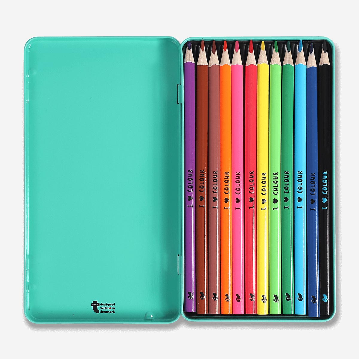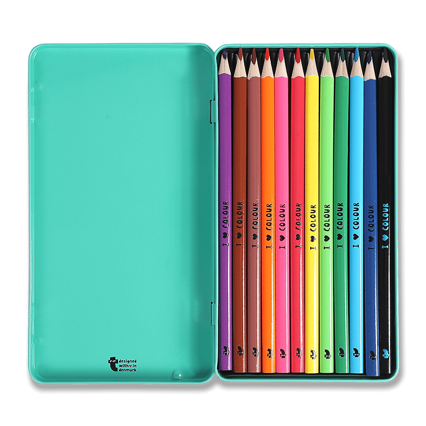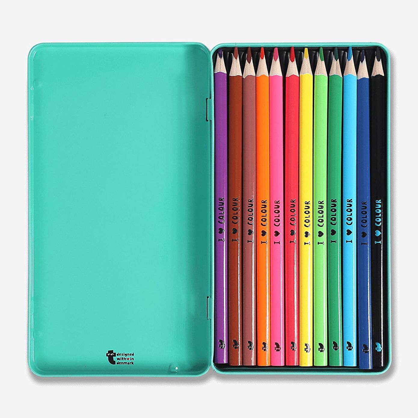 Metal kutuda sunulan bu renkli kalem seti, 12 canlı renkte kalem içerir ve her biri pürüzsüz, zengin bir renk uygulaması sağlar. Kalemler, evde veya hareket halindeyken koruma ve düzen sağlamak için şık bir metal kutuda muhafaza edilir.