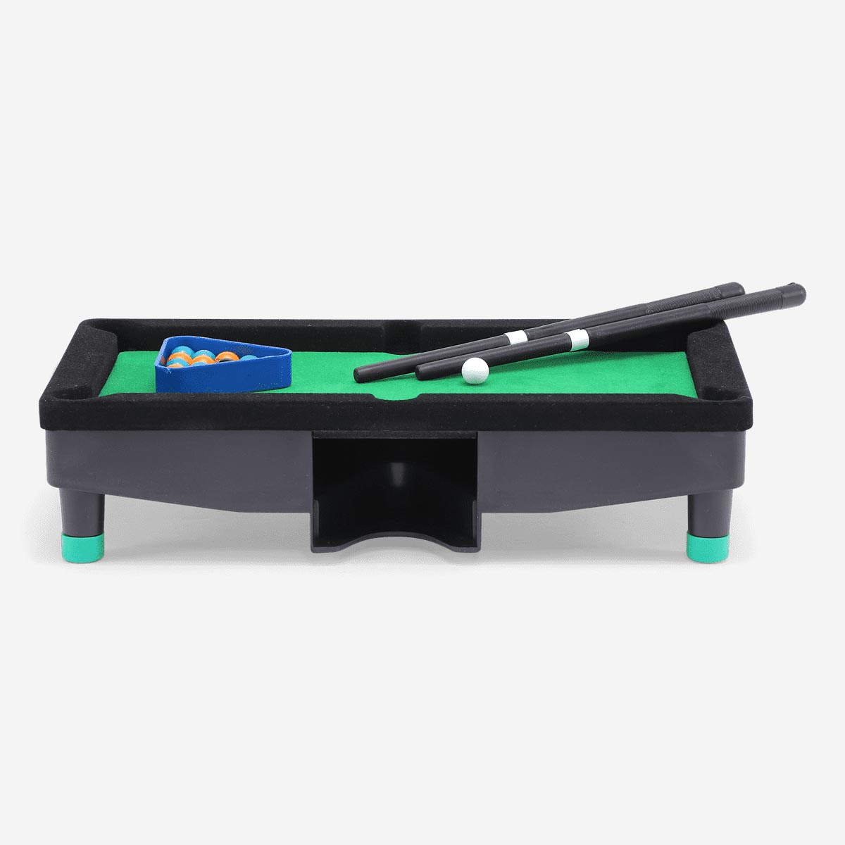 Mini bilardo oyunu, küçük bir pakette gerçekçi bir oyun deneyimi sunacak şekilde tasarlanmıştır. Yeşil keçe yüzey, tam boyutlu bir bilardo masasının görünümünü ve hissini verir, böylece favori oyununuzu daha küçük bir ölçekte keyifle oynayabilirsiniz. Yapı, masanın ve aksesuarların düzenli kullanıma dayanmasını sağlar.