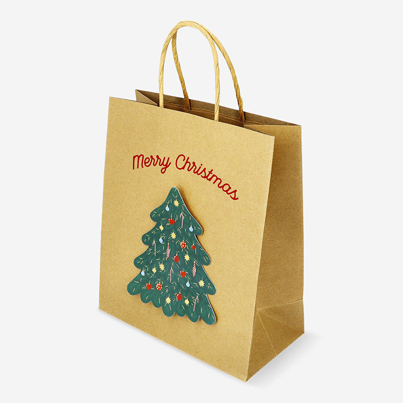 Yılbaşı hediyelerine ekstra bir neşe katmak için Yılbaşı Ağacı Hediye Çantası harika bir seçim! 19.5 x 23 x 10 cm boyutlarındaki bu renkli kağıt çanta, yılbaşı hediyelerini şık bir şekilde sunmak için mükemmel bir tercihtir. Kağıttan üretilmiş olan çanta, çeşitli hediyeler ve ikramlar için yeterince dayanıklıdır. Canlı yılbaşı ağacı tasarımı, hediyelerine neşeli ve şenlikli bir dokunuş katar, bu sayede yılbaşı kutlamaların için ideal bir seçenek sunar.