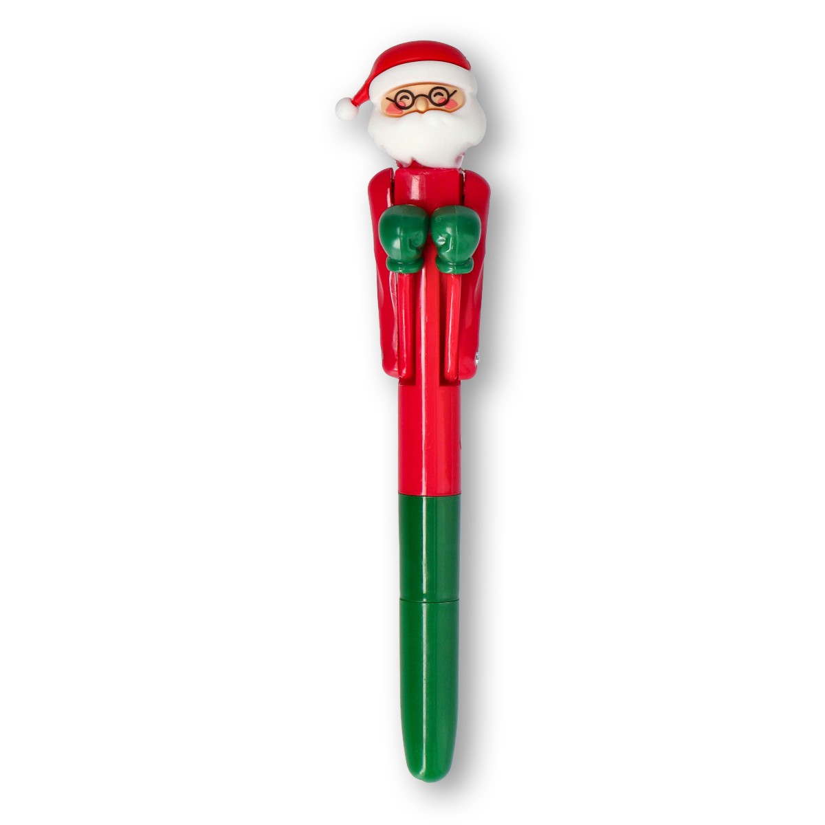 Yeşil Kırmızı Noel Babalı Kalem 17,2 cm ile yazılarınıza yılbaşı neşesi katın. 3,5 cm x 17,2 cm ölçülerindeki bu çok renkli plastik kalem, masanıza ve çalışma alanınıza neşeli bir dokunuş ekler. Noel Baba'nın kolları, basit bir itme hareketiyle sevimli bir şekilde hareket eder, bu da kalemi sadece işlevsel değil, aynı zamanda eğlenceli bir kıpır kıpır oyuncak haline getirir.