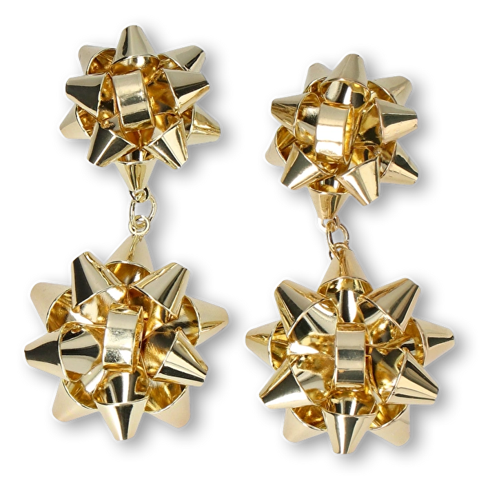 Bu zarif Gold Hediye Paketi Süsü Şekilli Küpe ile tarzınıza yılbaşı ışıltısı katın. Metalden üretilen bu küpeler, parlak altın kaplama detaylarıyla dikkat çeken yıldız şeklinde bir tasarıma sahiptir. 2.1 x 2.1 x 1 cm boyutlarındaki bu küpeler, abartısız bir şıklıkla öne çıkmak için mükemmel boyuttadır. Yılbaşı partileri veya günlük stilinize biraz ışıltı katmak için idealdir. Zamansız tasarımı sayesinde her yıl tekrar kullanılabilir, bu da onları her takı koleksiyonuna çok yönlü bir ek yapar. Bu göz alıcı altın yıldız küpeler ile eğlenceli sezonu karşılayın.