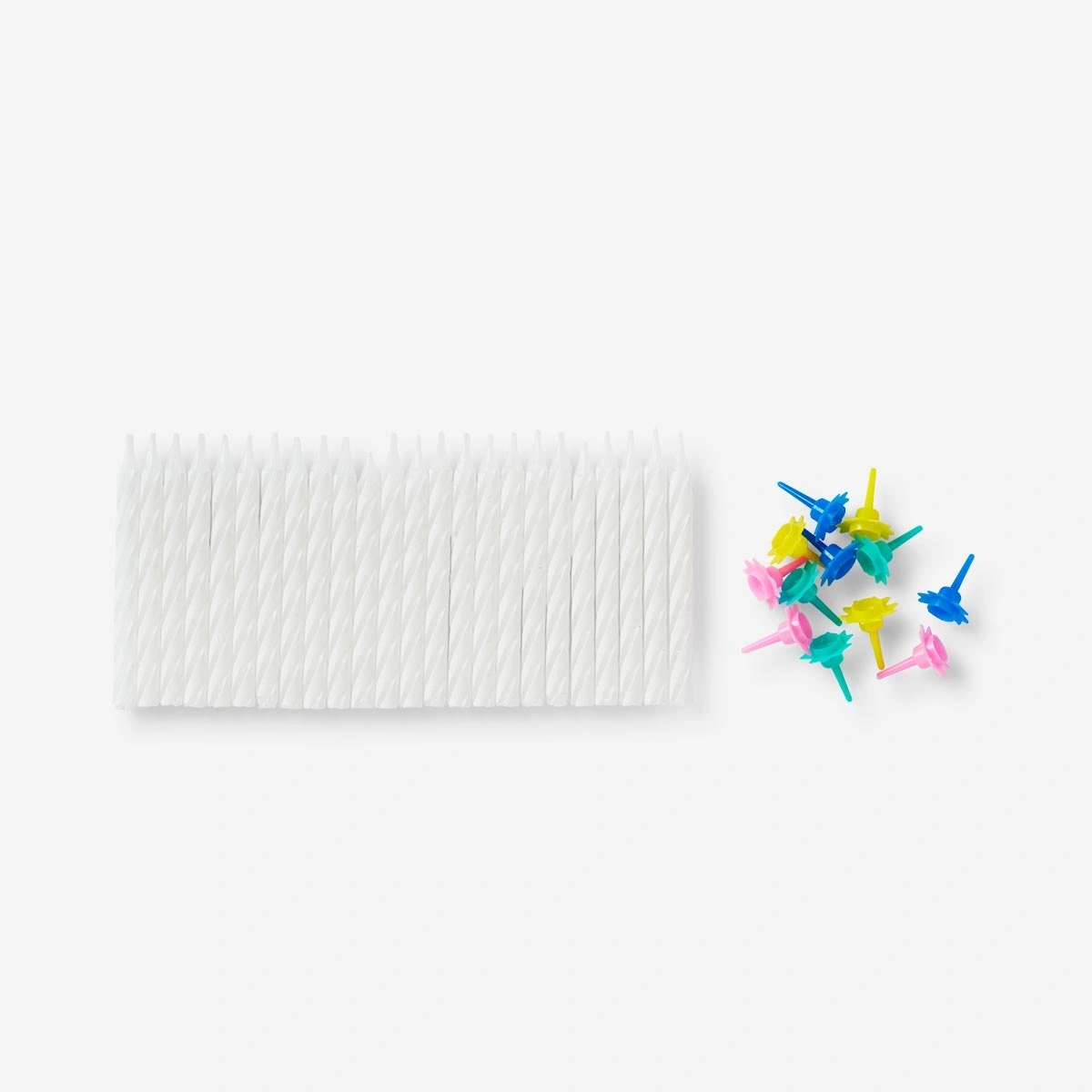 24'lü Beyaz Pasta Mumu'na mum tutacakları dahildir. Yanma süresi 15 dakikadır. Yüksekliği 6 cm'dir.