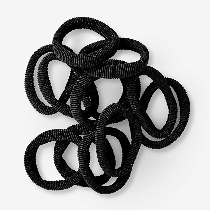Saçlarını şekillendirmenin en kolay yolu bu kalın siyah saç lastikleri ile elinde! Geri dönüştürülmüş polyesterden üretilen bu lastikler, saçlarına güçlü ve rahat bir tutuş sağlar. İster at kuyruğu, ister topuz yap, bu 3.5 x 3.5 x 0.8 cm boyutlarındaki lastikler, saç modellerine mükemmel uyum sağlar.