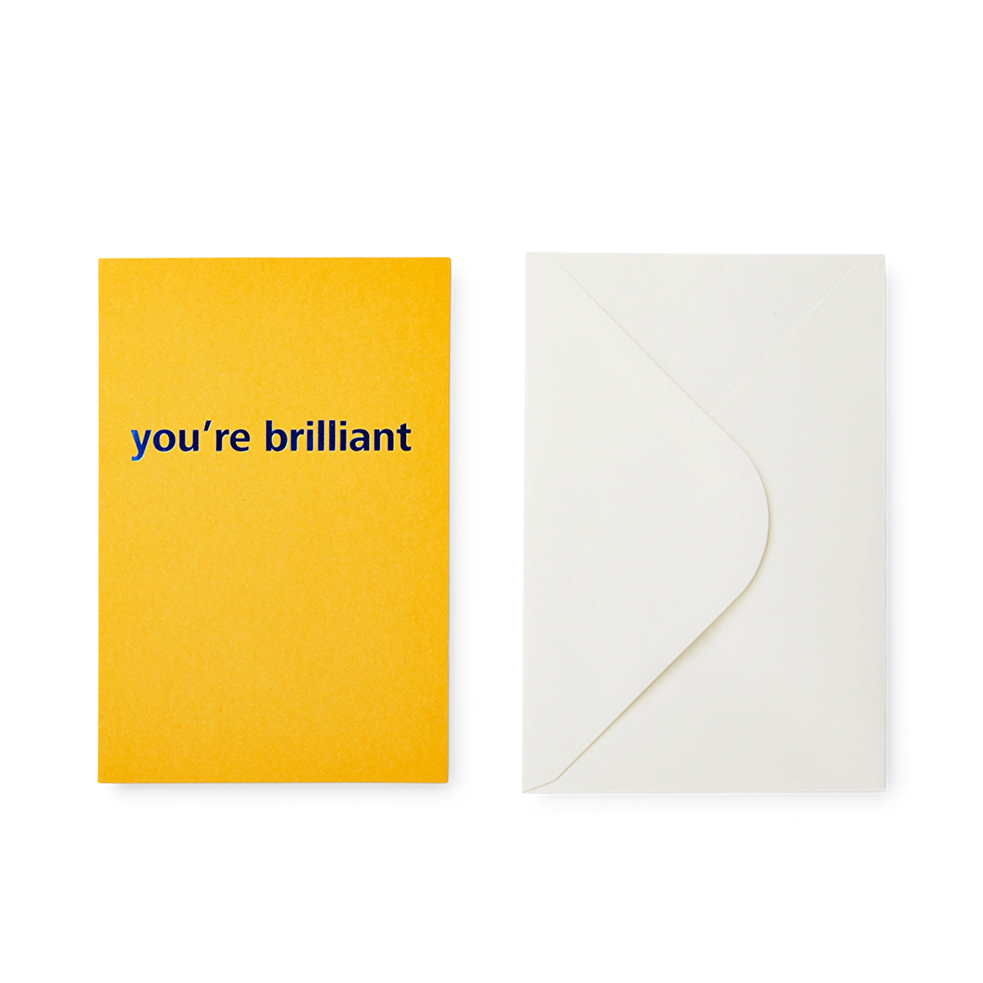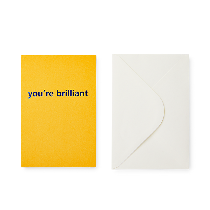 Sarı You're Brilliant Kart ile düşüncelerinizi stil sahibi bir şekilde paylaşın. 17 x 11,5 cm boyutlarındaki kart, eğlenceli bir tasarıma sahip olup, her türlü özel an için mükemmel bir seçenek sunar. İçten bir mesaj ya da basit bir not göndermek istediğinizde, bu kart duygu ve düşüncelerinizi estetik bir şekilde iletmenizi sağlar.